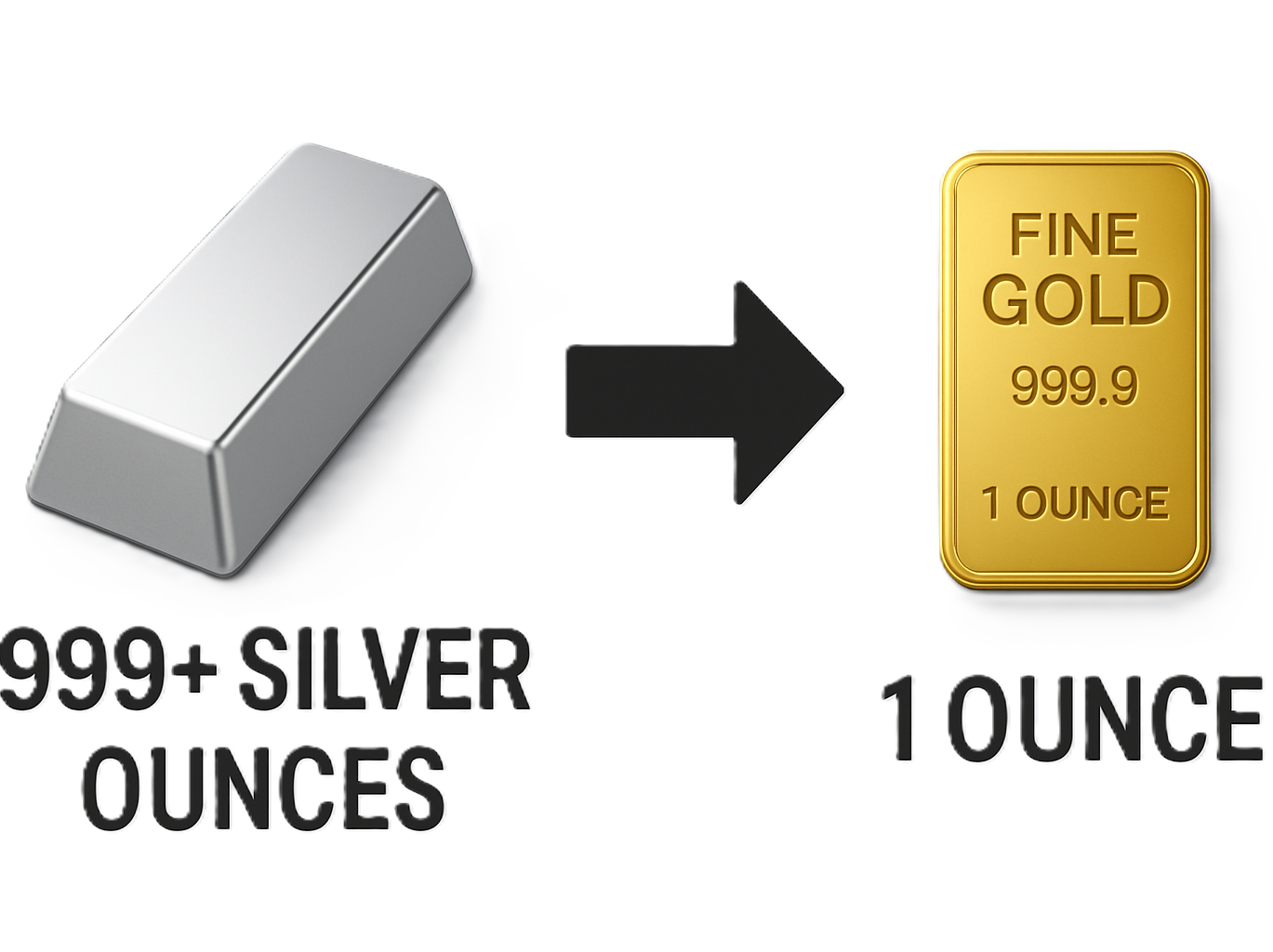 We exchange silver bullion for 1 ozt gold bullion at today's gold / silver ratio. *Conditions may apply. While supplies last.