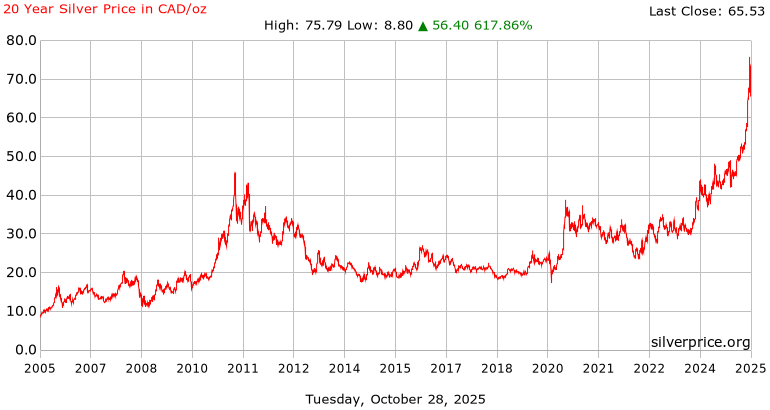 20 Years Silver Prices in Canadian Dollars