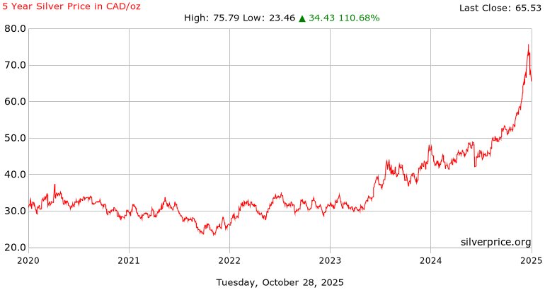 5 Years Silver Prices in Canadian Dollars