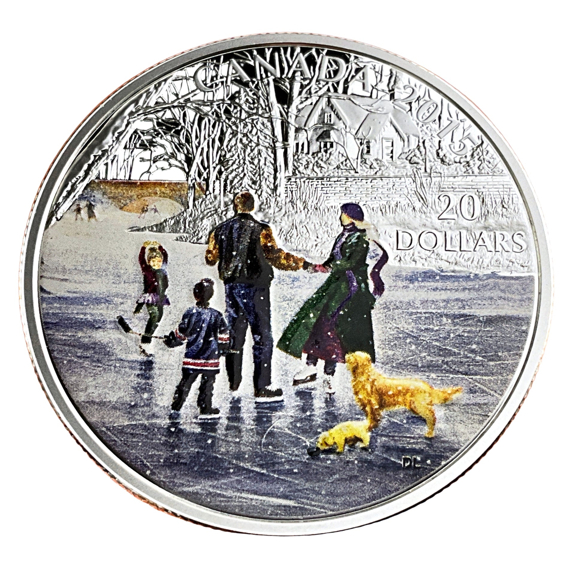 The image shows the 2015 $20 Fine Silver Coin - Winter Scene: "Ice Dancer" from the Royal Canadian Mint.