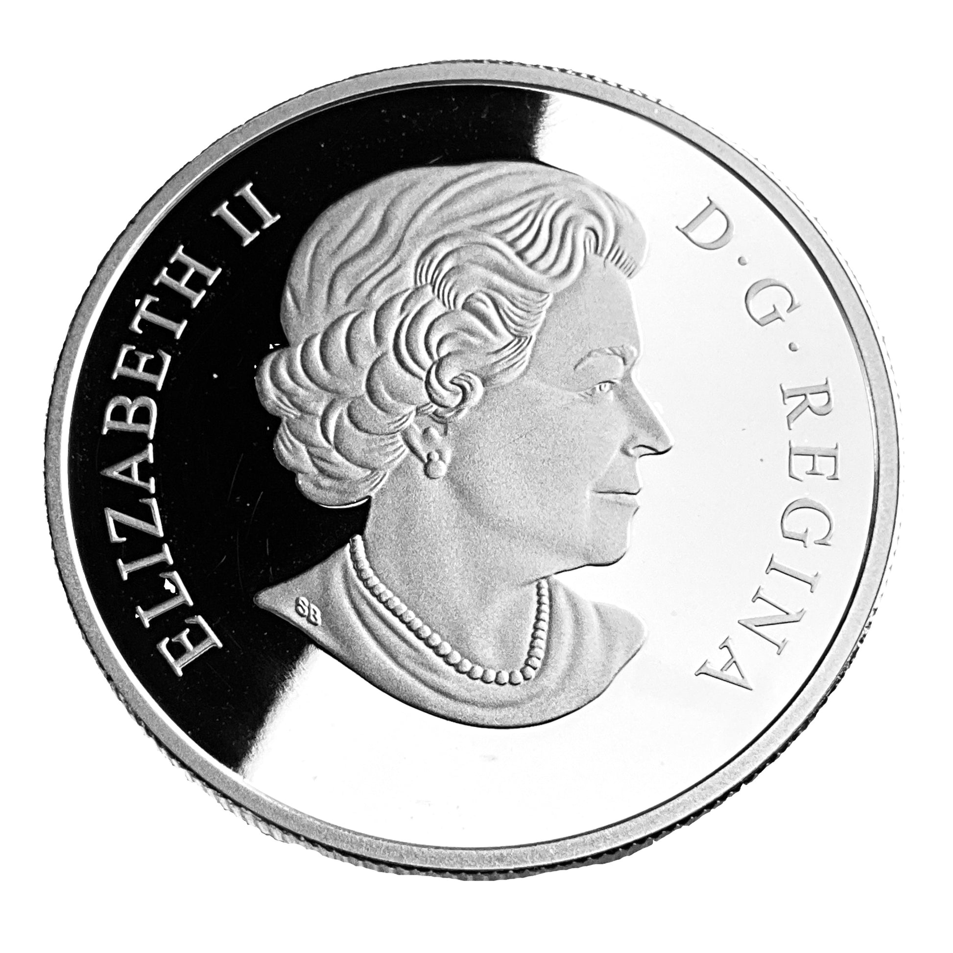 The image displays the obverse side of a Canadian Silver Dollar, featuring a portrait of Queen Elizabeth II. The inscription "ELIZABETH II" and "D. G. REGINA" (Dei Gratia Regina, meaning "By the Grace of God, Queen") are visible around the effigy. This design is typical of Canadian coinage featuring the reigning monarch.