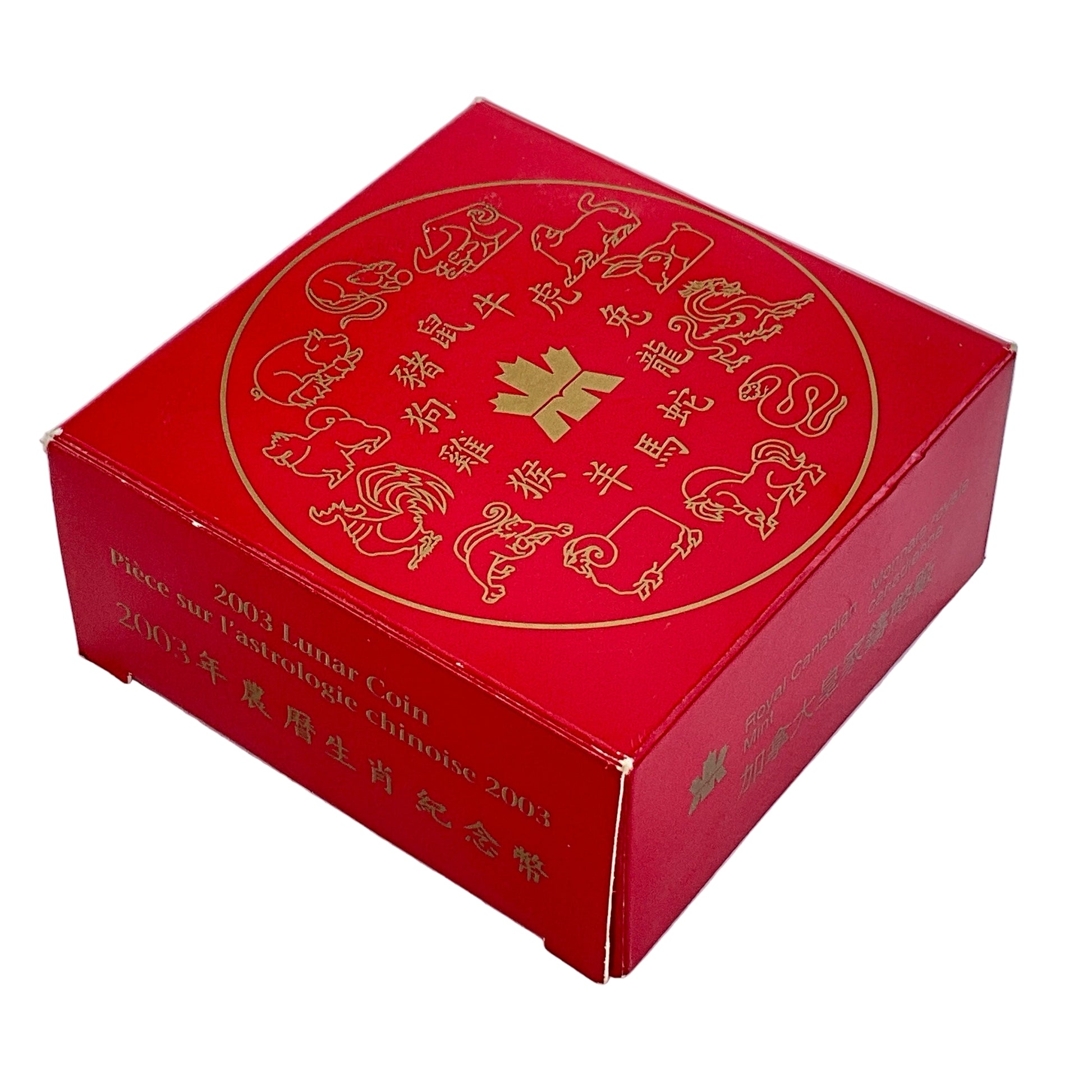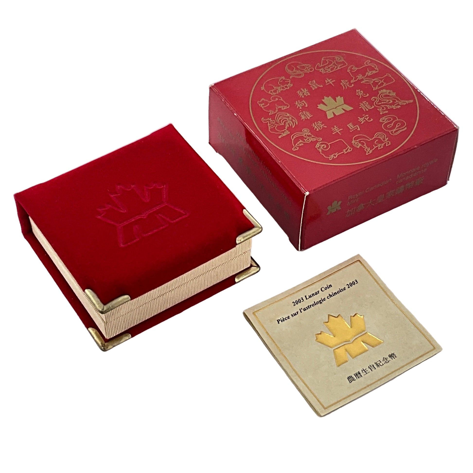 This is a 2003 Canadian $15 Lunar Year of the Sheep (or Ram) Sterling Silver Coin with a gold-plated cameo, part of the Royal Canadian Mint's Chinese Lunar Calendar series.