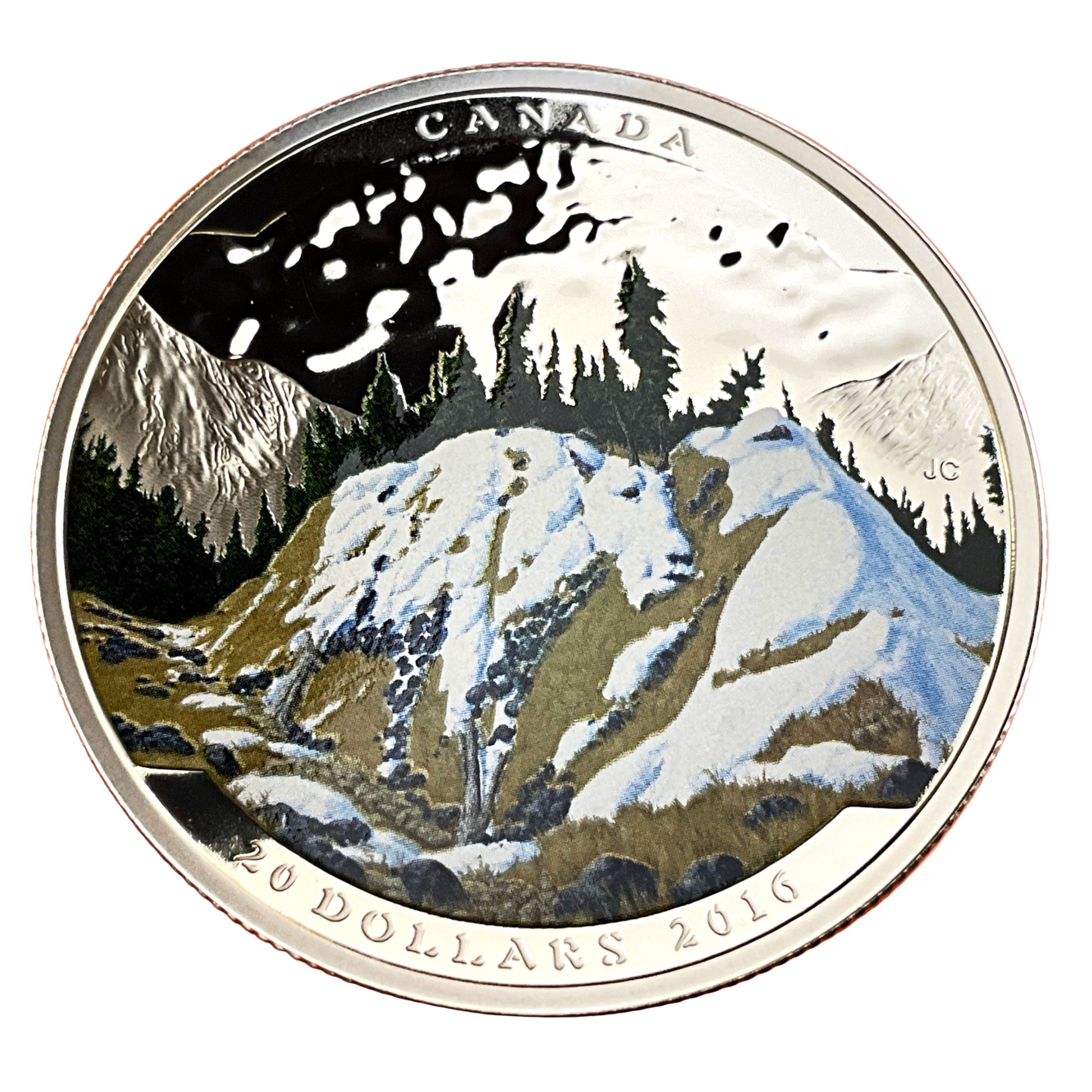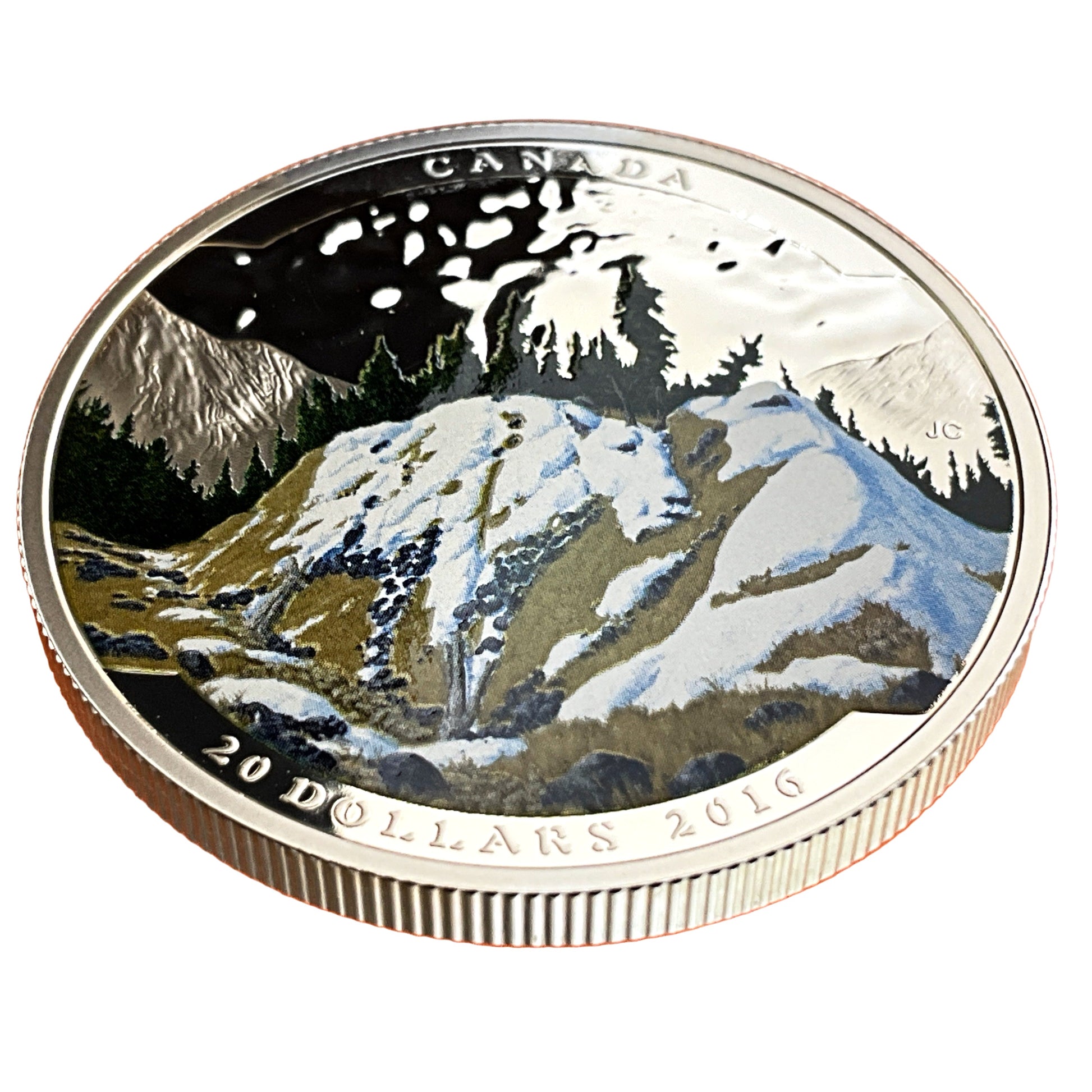 This is the 2016 $20 Landscape Illusion: Mountain Goat Pure Silver Coin from the Royal Canadian Mint.
