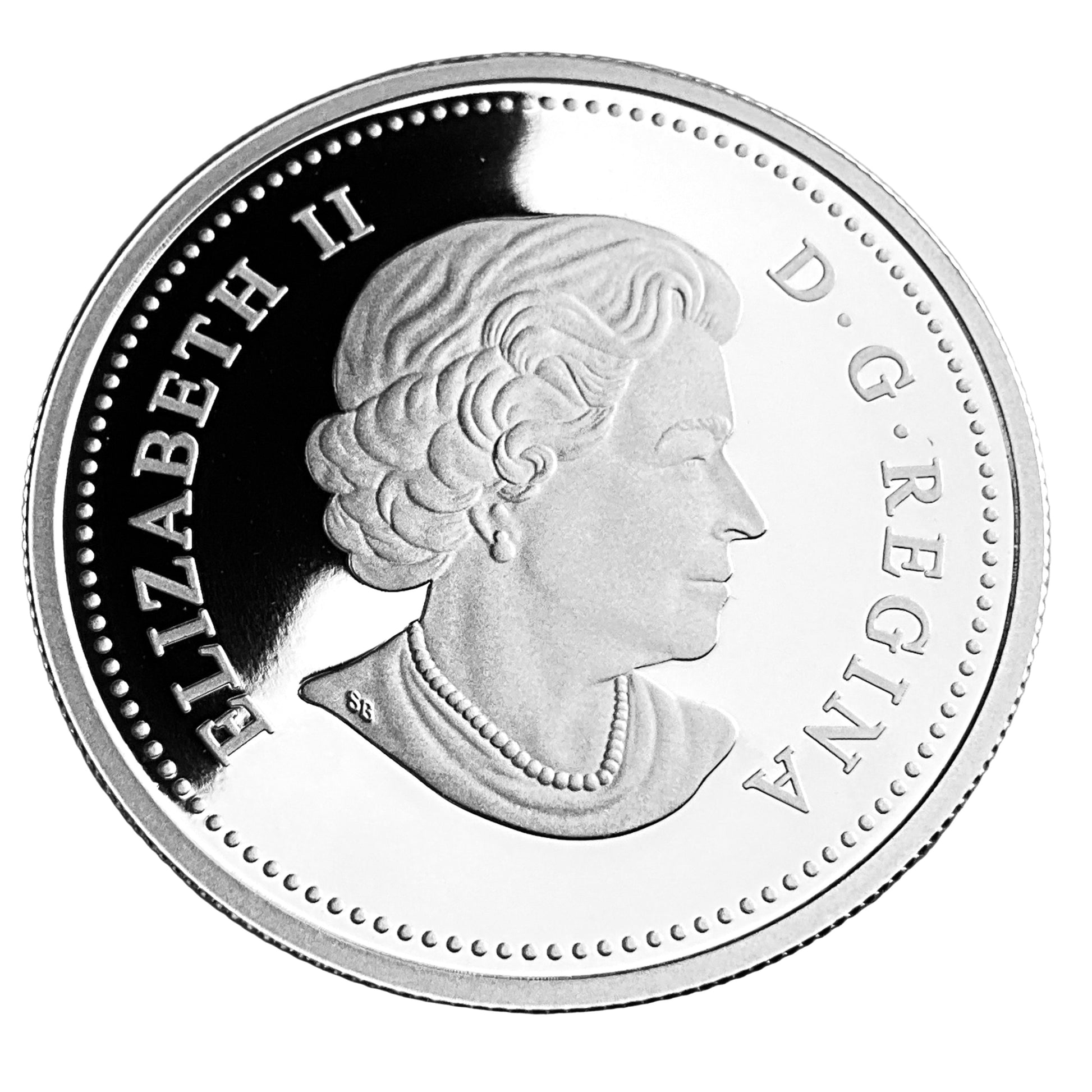 The image displays the obverse side of a Canadian Silver Dollar, featuring a portrait of Queen Elizabeth II. The inscription "ELIZABETH II" and "D. G. REGINA" (Dei Gratia Regina, meaning "By the Grace of God, Queen") are visible around the effigy. This design is typical of Canadian coinage featuring the reigning monarch.