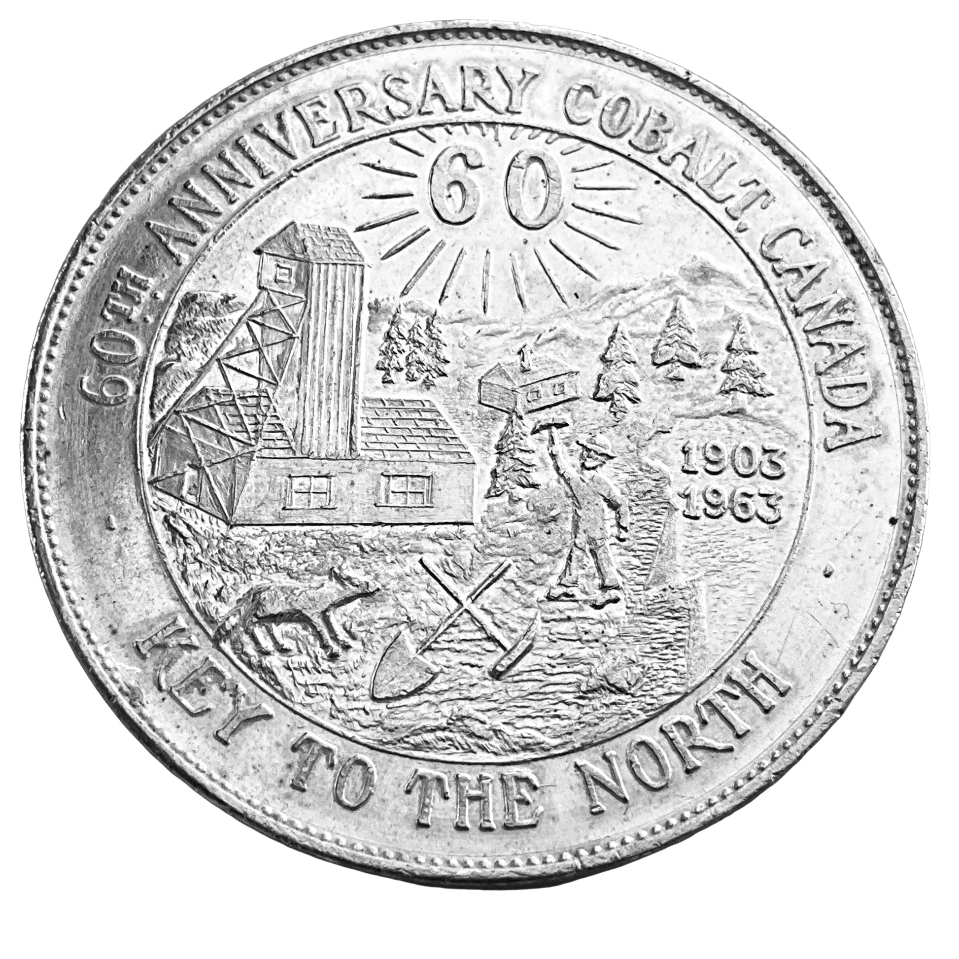This is a 1963 Cobalt, Ontario, 60th Anniversary .999 silver medallion, commemorating the period from 1903 to 1963.