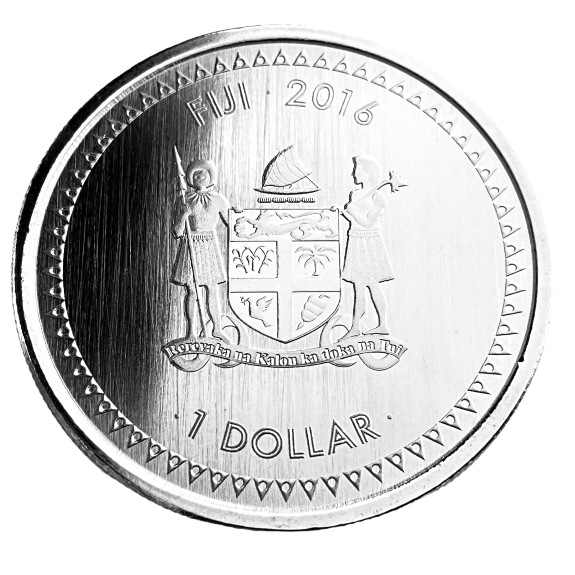 It contains 1 troy ounce of .999 pure silver and has a face value of One Dollar, which is legal tender in Fiji.