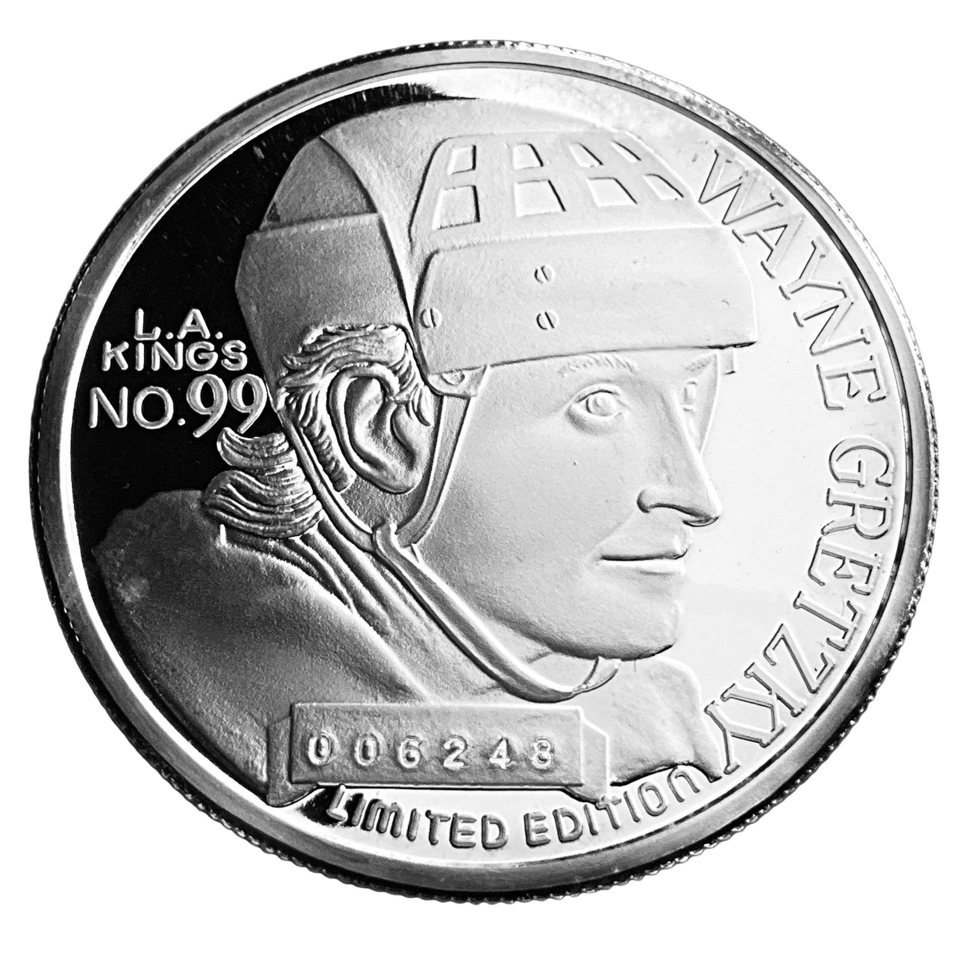 The text "WAYNE GRETZKY" is clearly visible along the coin's edge.