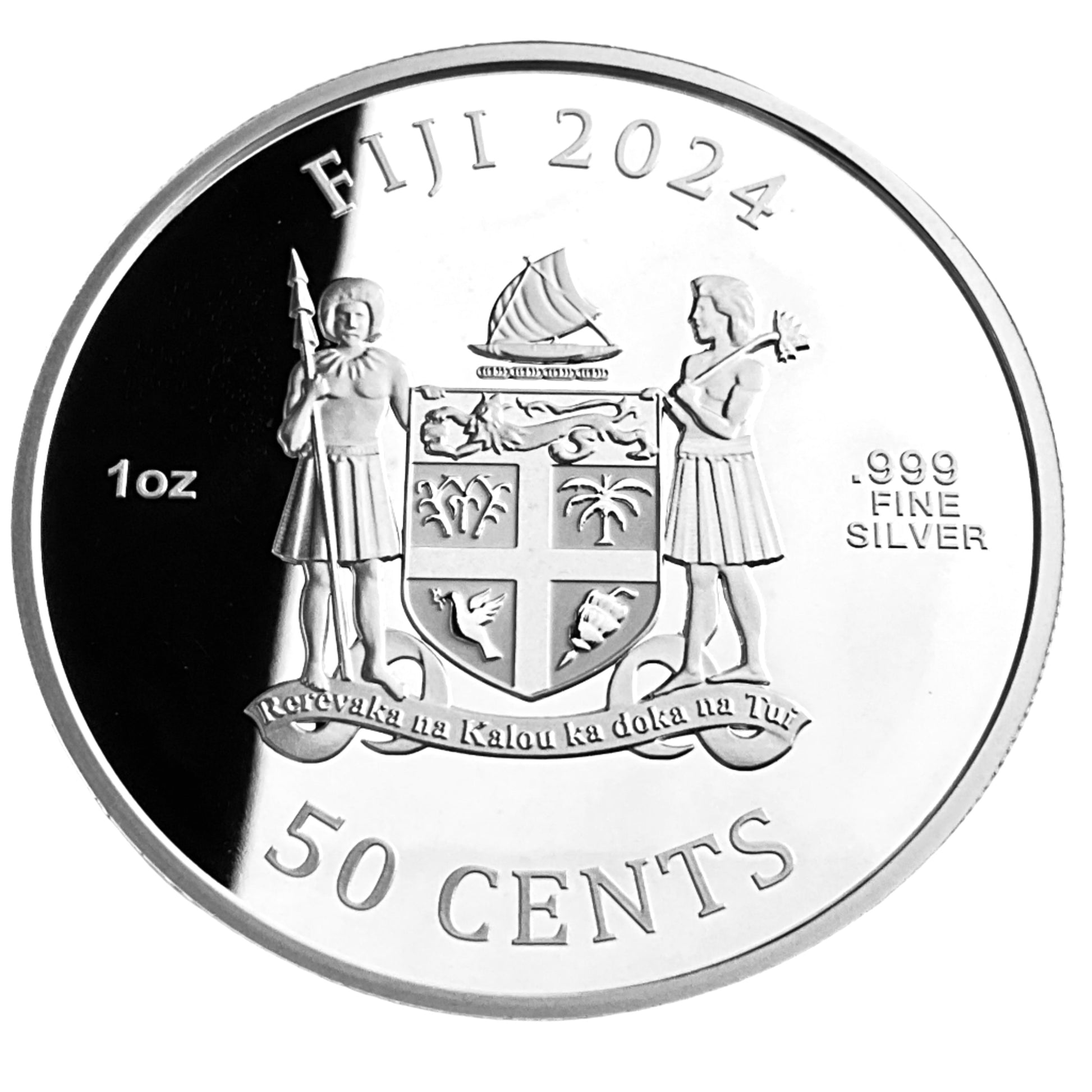 Design: The obverse displays the Fiji Coat of Arms, year, weight, and legal tender denomination.