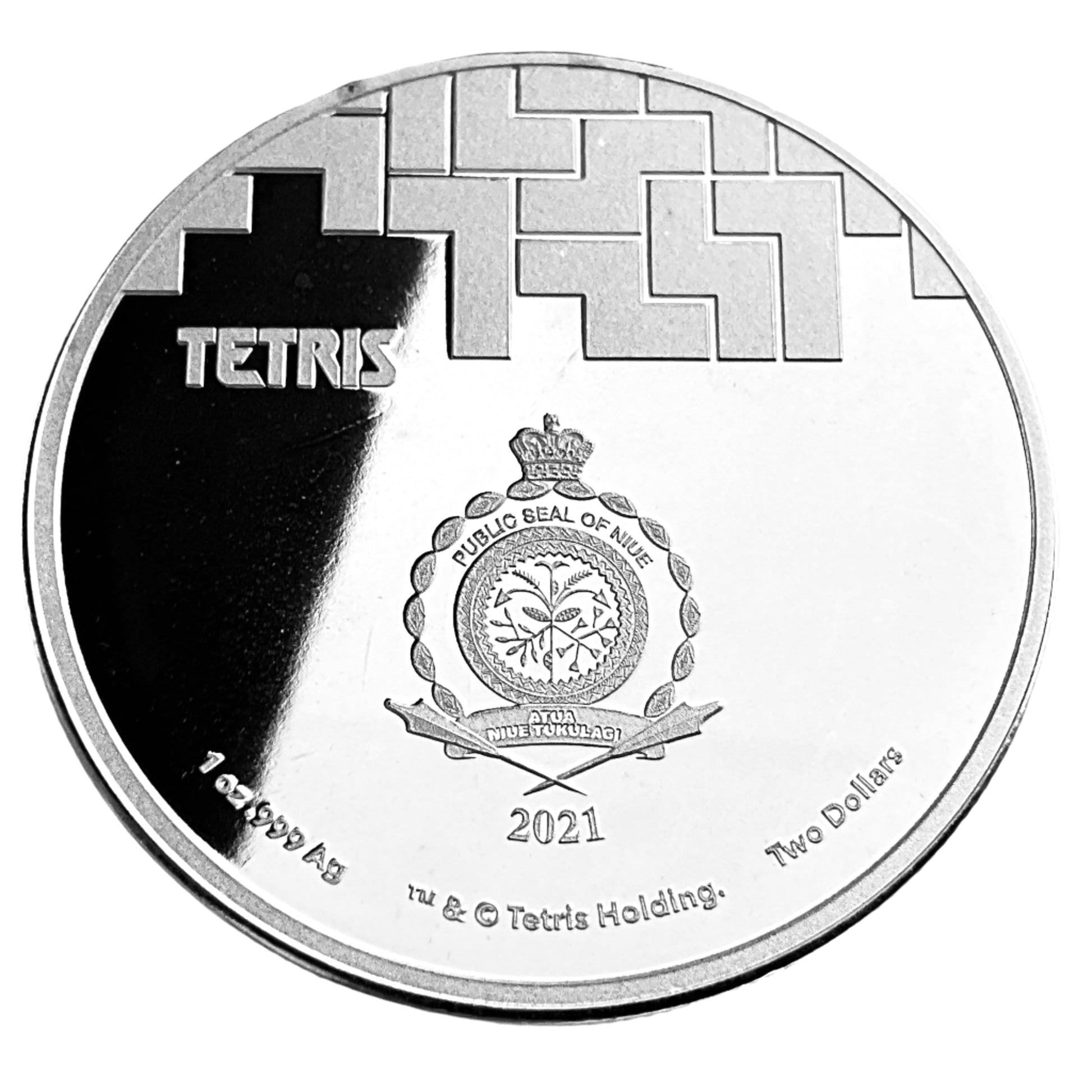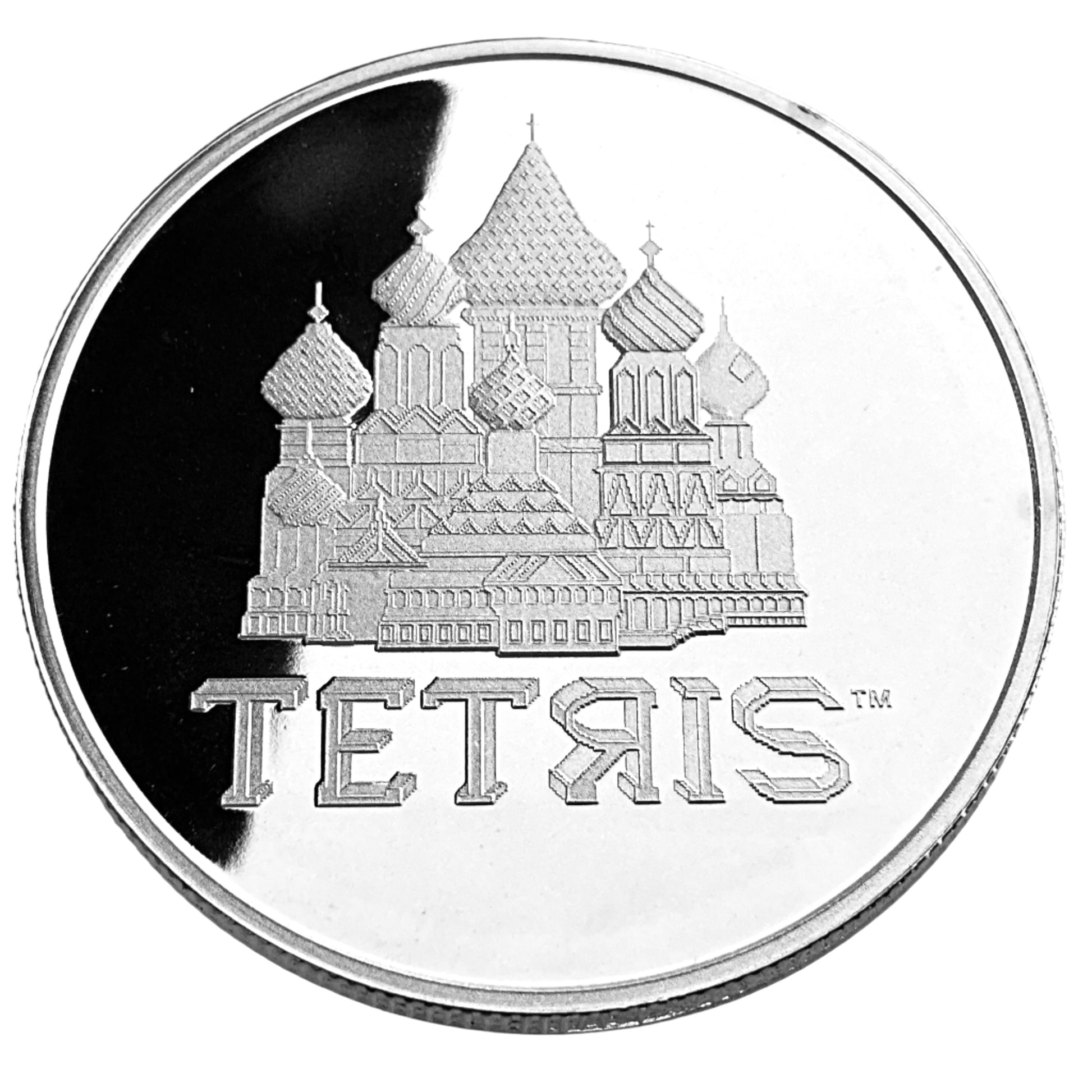 Design: The coin features an image of St. Basil's Cathedral, which was famously depicted in earlier versions of the Tetris game, alongside the "Tetris" logo.