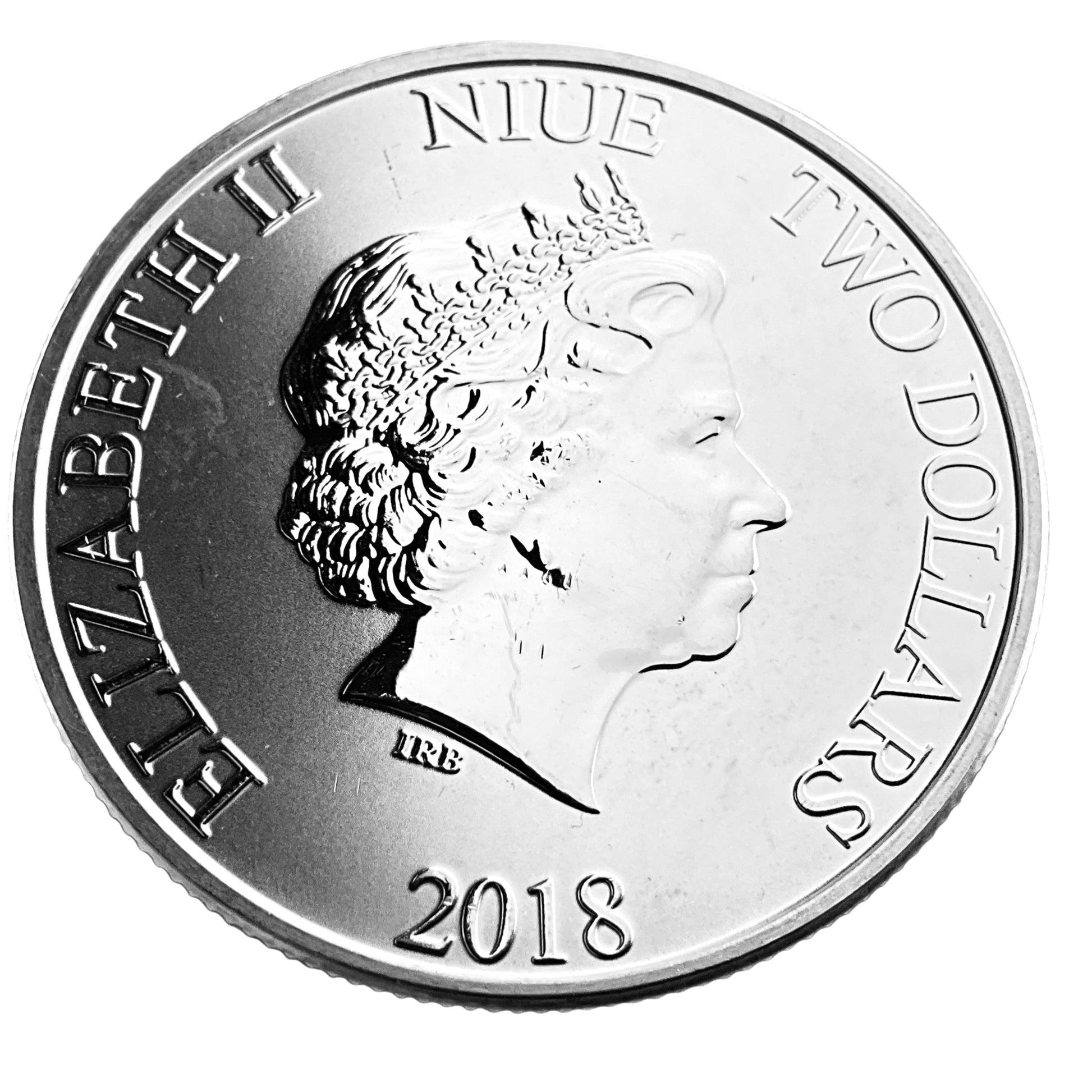 The coin contains 1 troy ounce of .999 pure silver and has a face value of $2 (NZD), backed by the government of Niue.