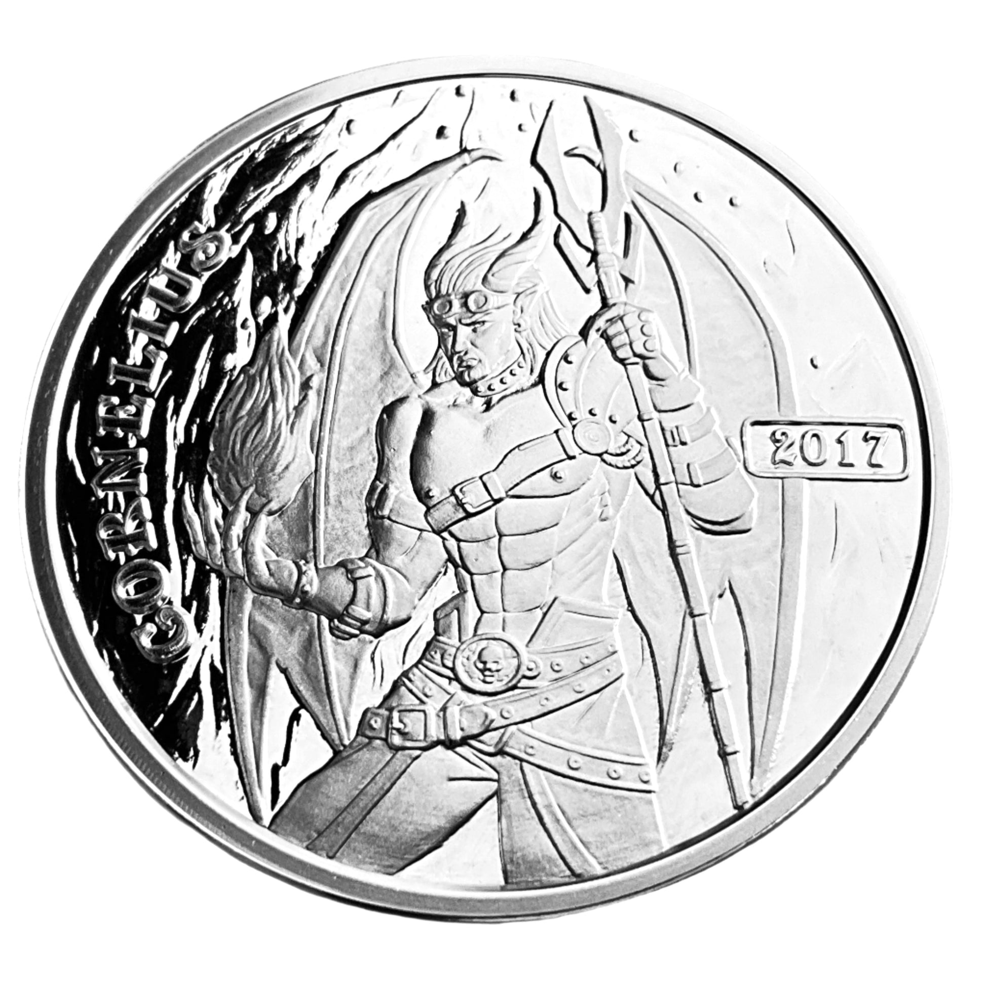 Cornelius is a demon, specifically the first demon in the Osborne Mint's "Angels & Demons" collection, portrayed as a fiery being with bat wings.