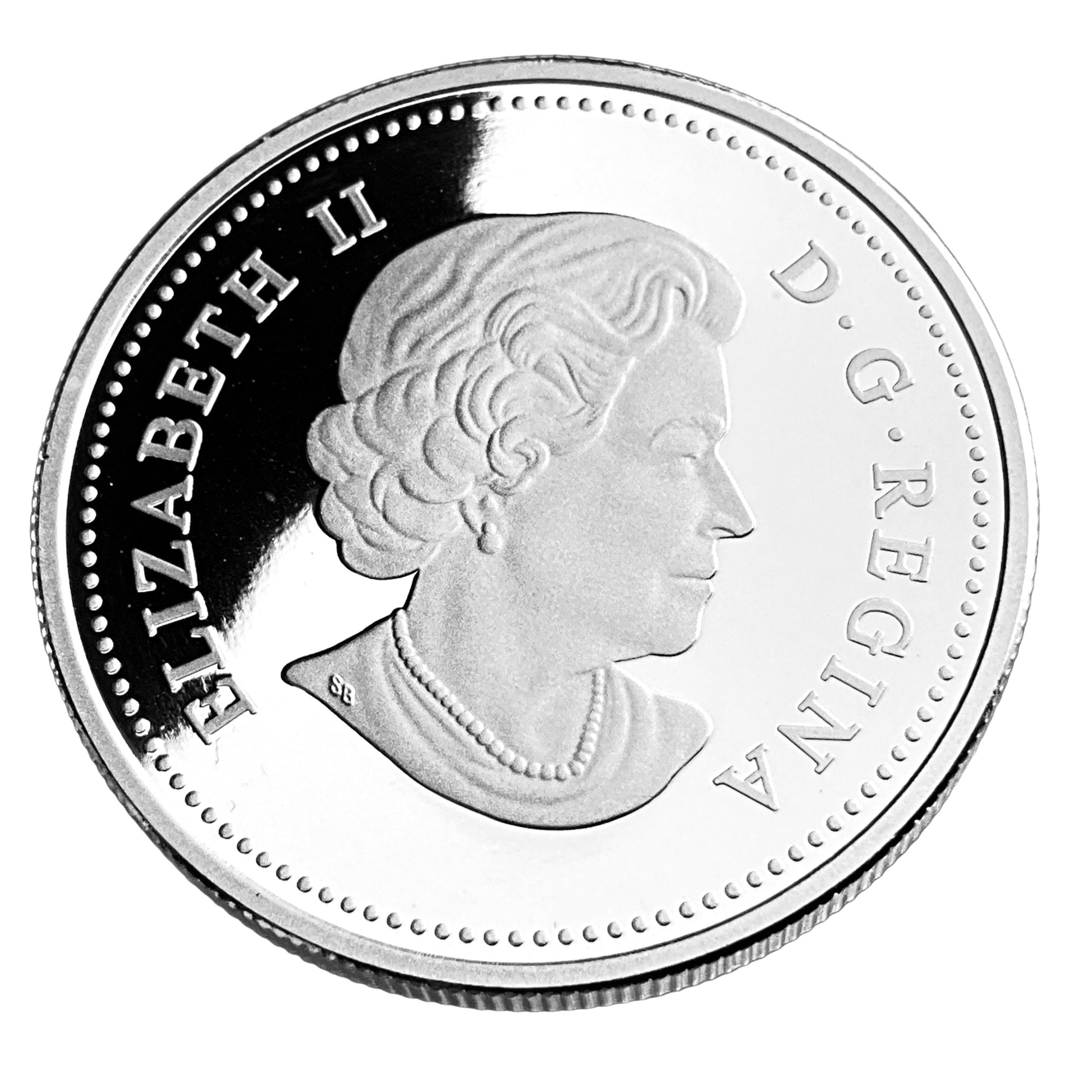 The image displays the obverse side of a Canadian Silver Dollar, featuring a portrait of Queen Elizabeth II. The inscription "ELIZABETH II" and "D. G. REGINA" (Dei Gratia Regina, meaning "By the Grace of God, Queen") are visible around the effigy. This design is typical of Canadian coinage featuring the reigning monarch.