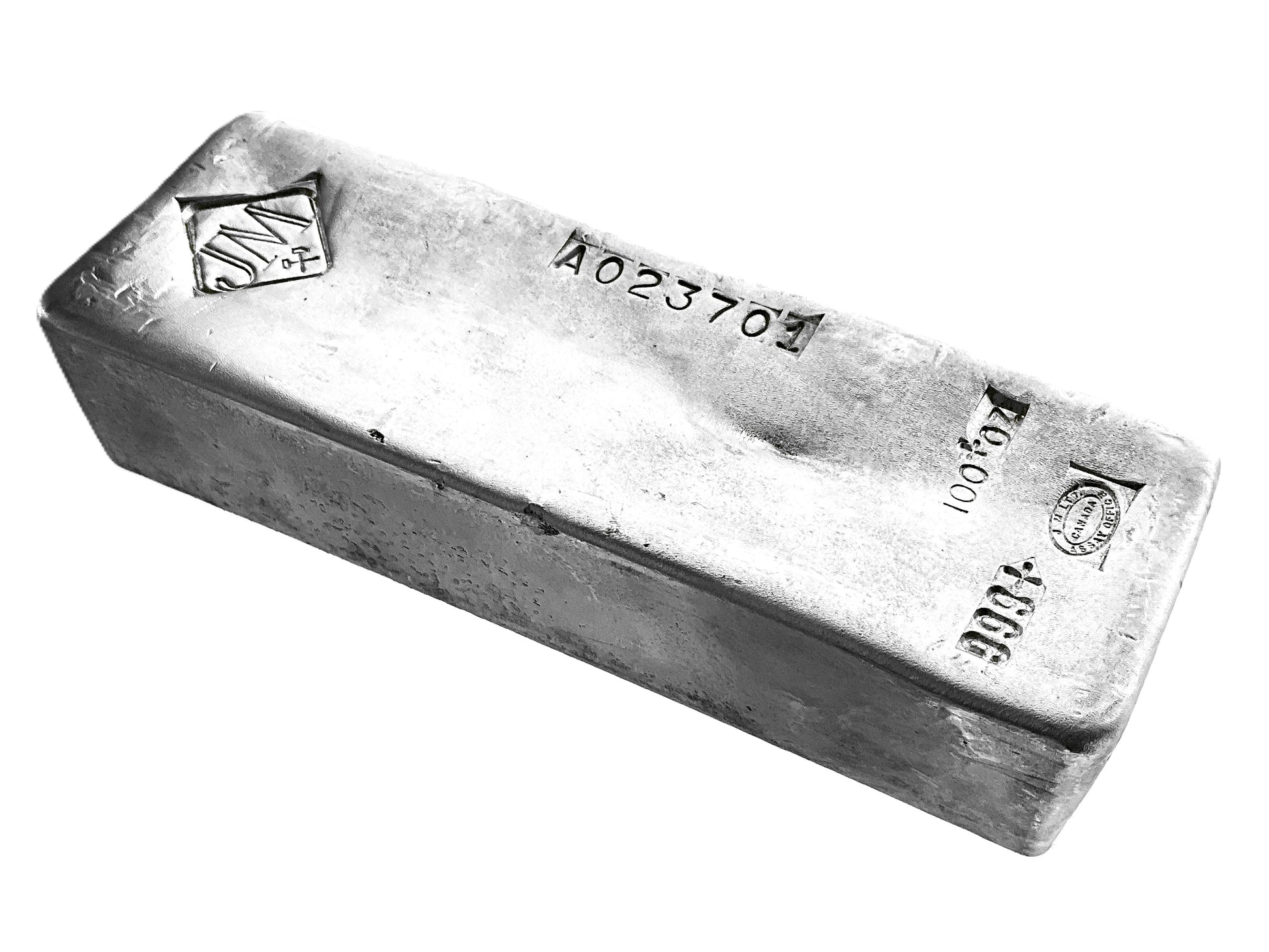 This is a hand-poured Johnson Matthey 100 oz silver bar.