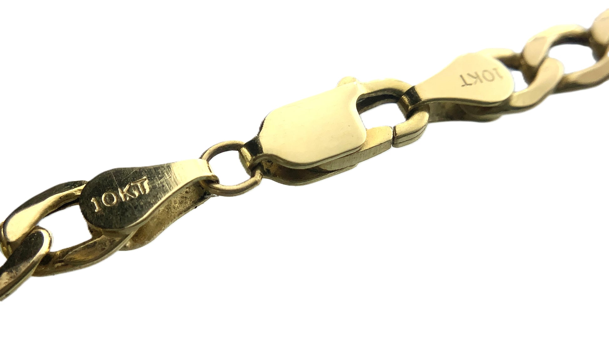 This is a 10K yellow gold Cuban link marked BS chain with a lobster clasp.