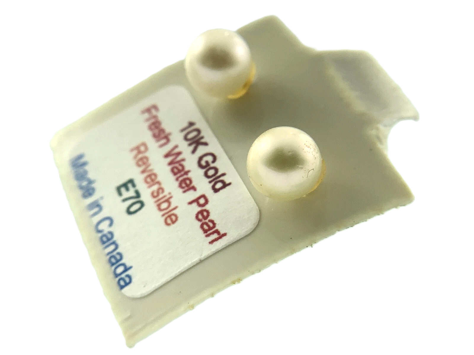 10K Gold Fresh Water Pearl Reversible Stud Earrings Made in Canada AU099
