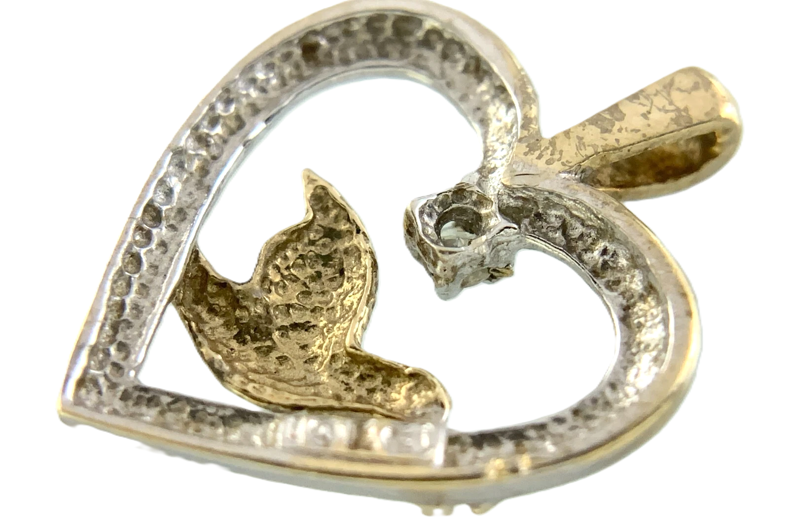 10K White Gold Heart Pendant with Yellow Gold Dove Symbol of Love AU287