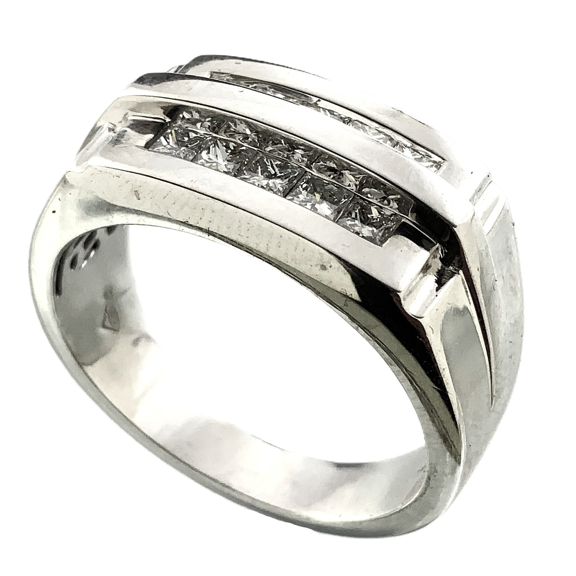 10K White Gold Two Channel Princess Diamonds Band Ring .9 Total Carats Size 10 AU363