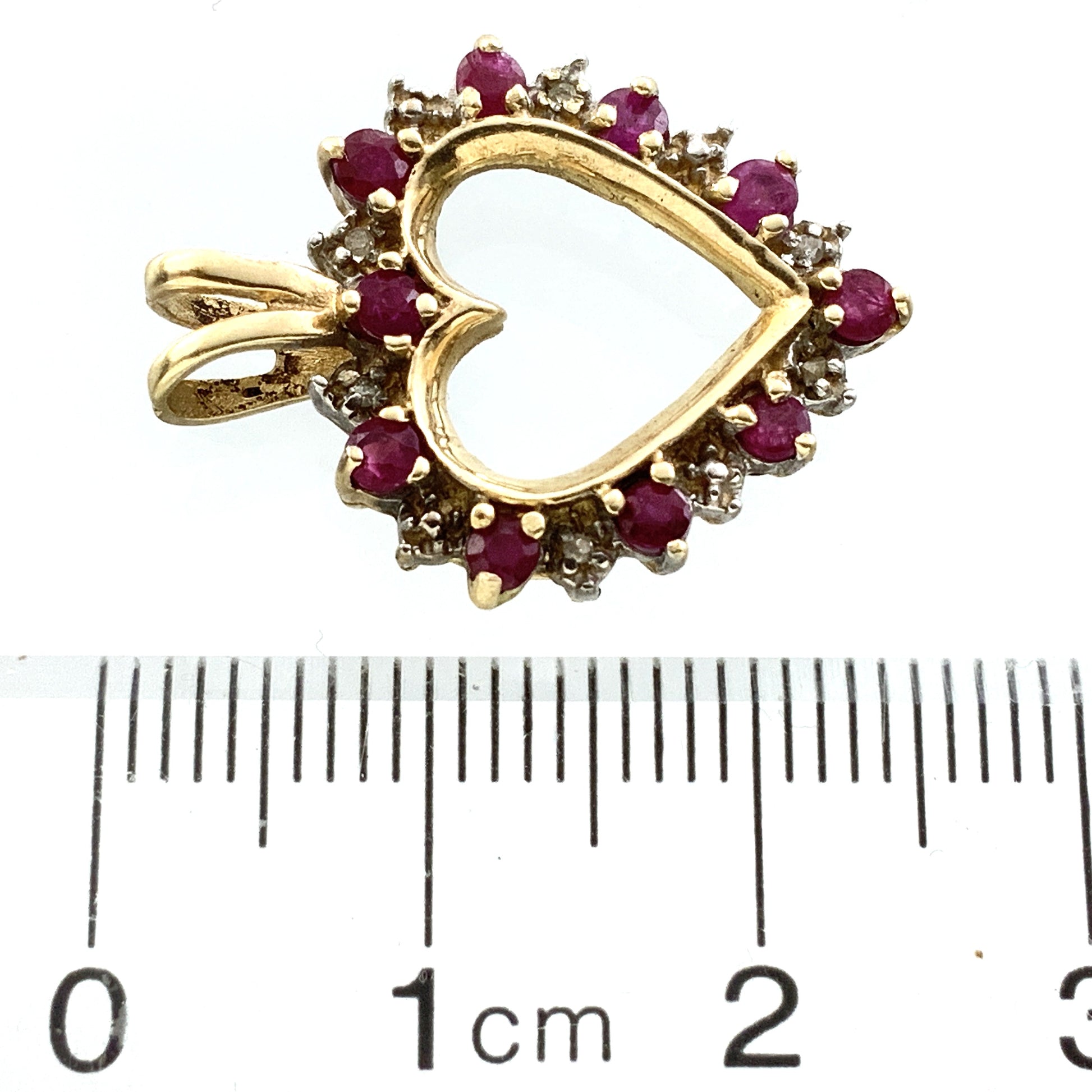 This is a yellow gold heart-shaped pendant decorated with stones.