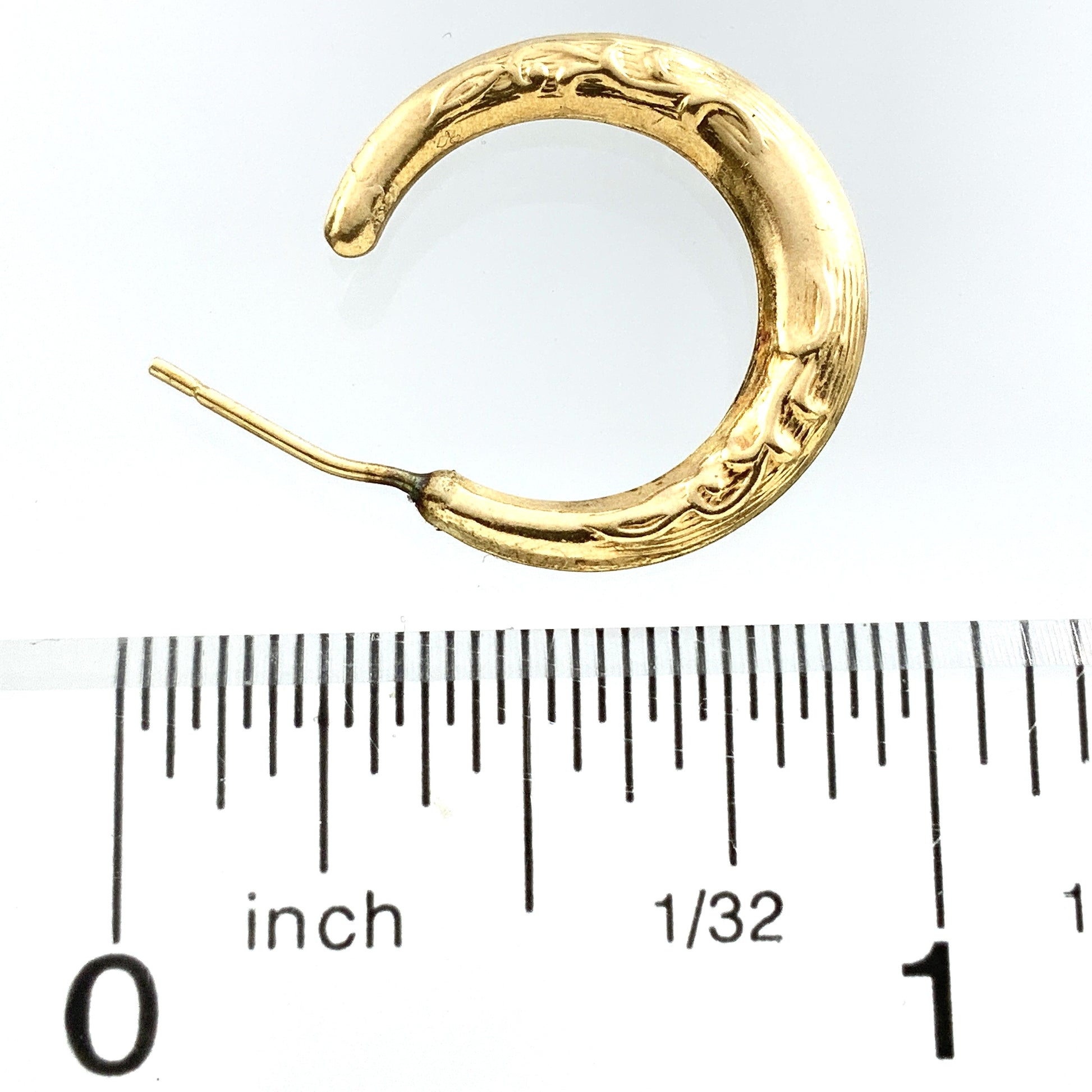 10K Yellow Gold Chunky Hoop Earrings With Engraved Design AU324