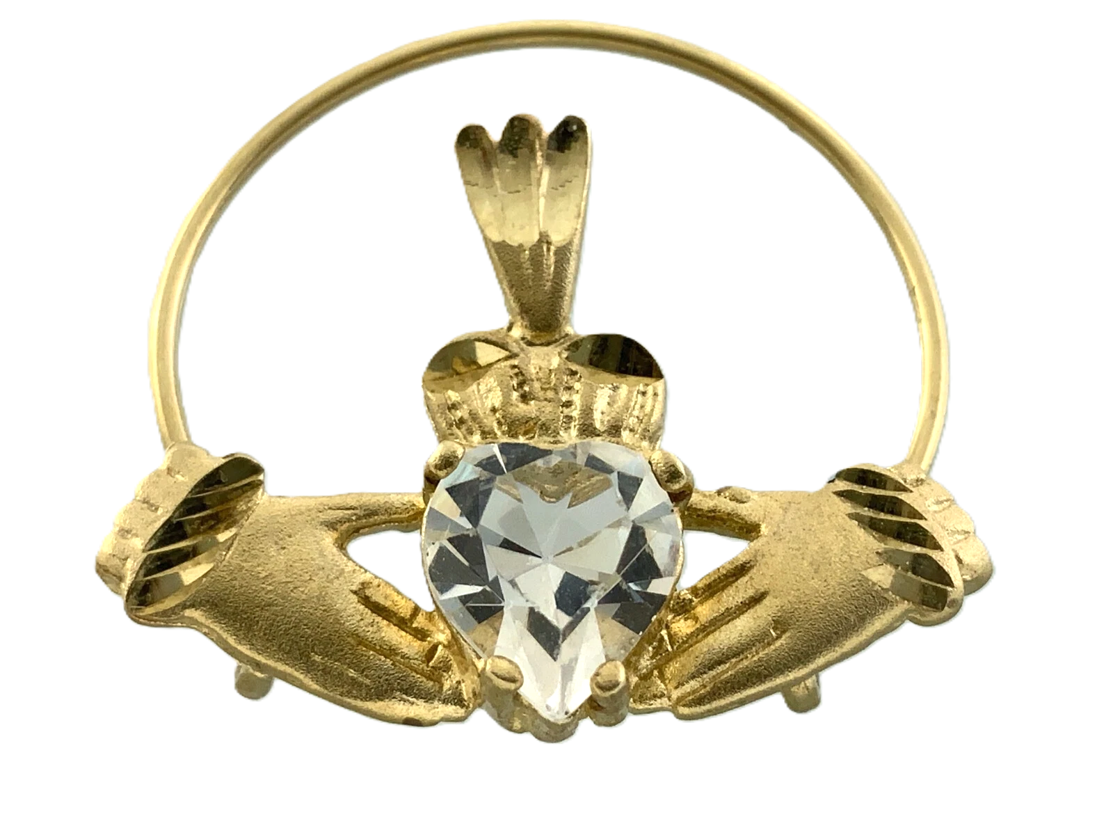10K Yellow Gold Classic Claddagh Pendant Hands Holding Heart AU158