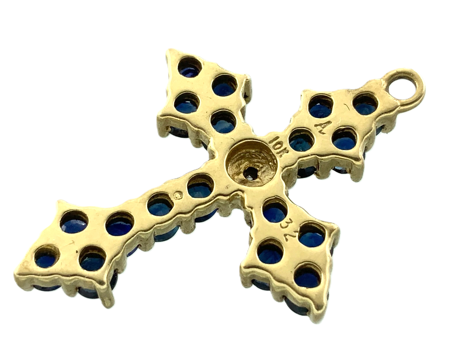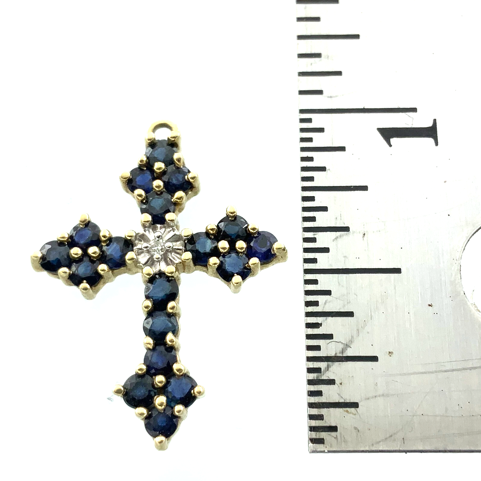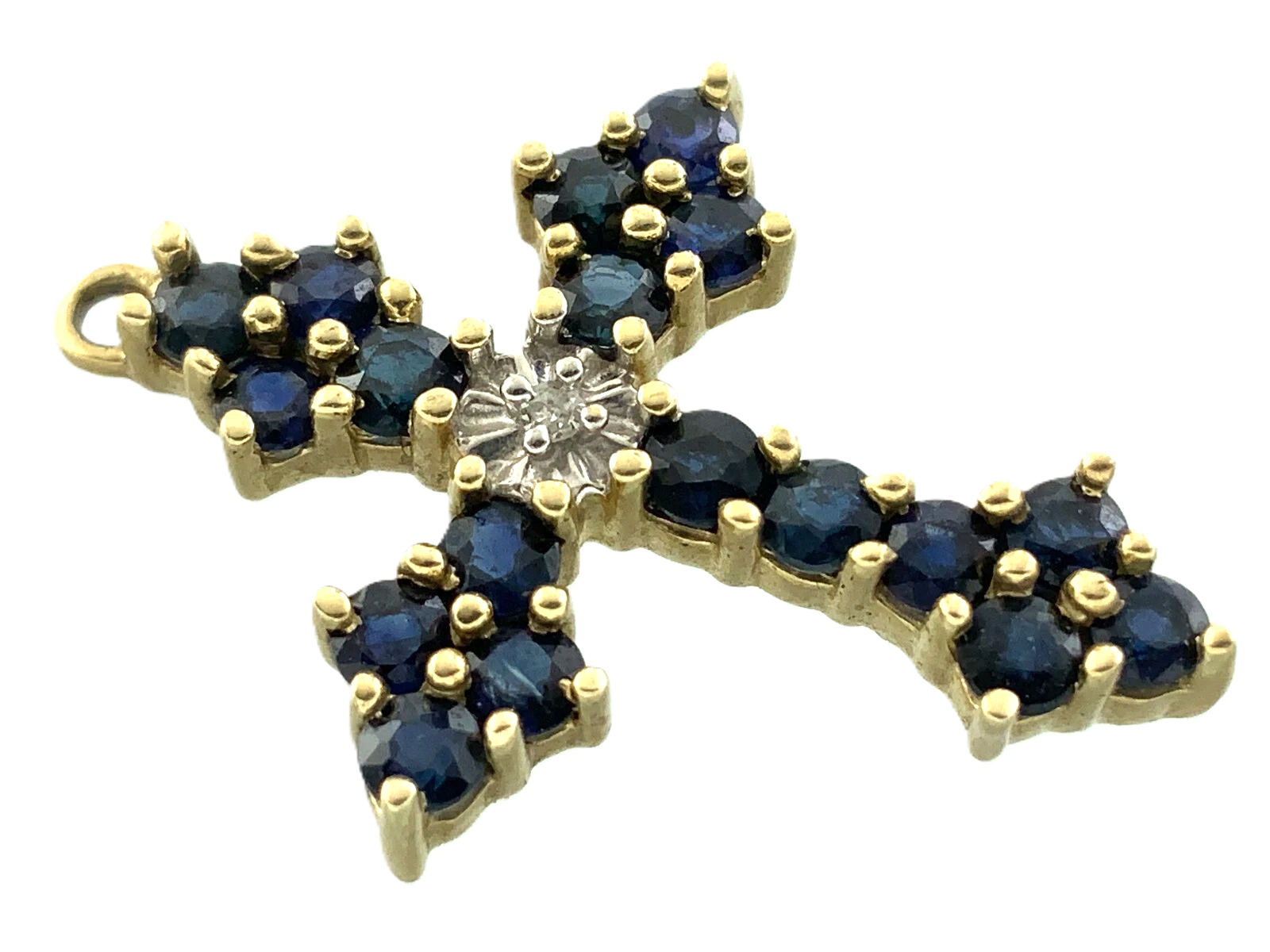 10K Yellow Gold Cross Sapphire Cluster Pendant Religious Charm AU081