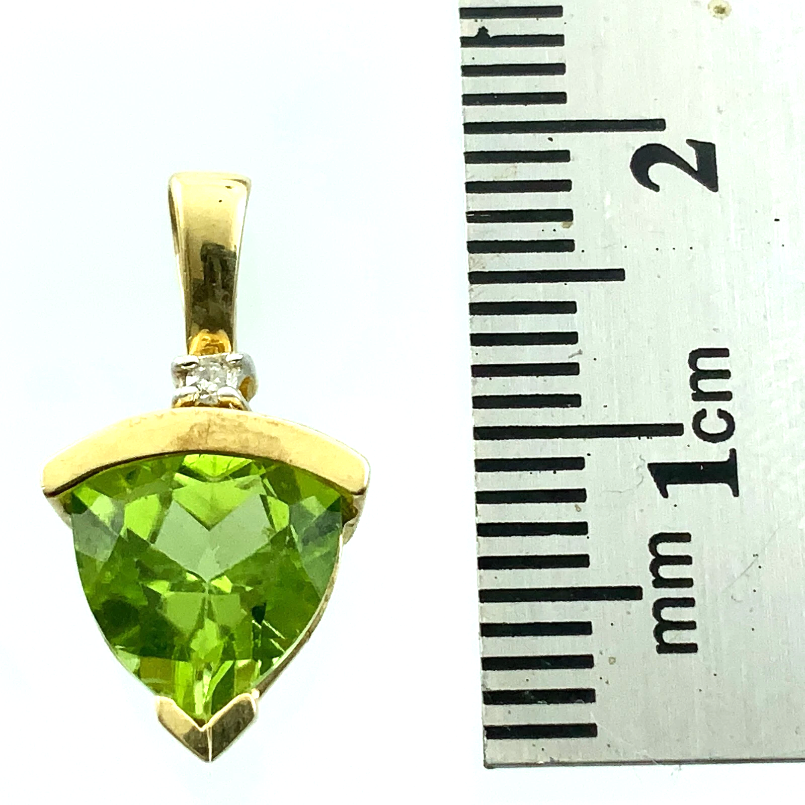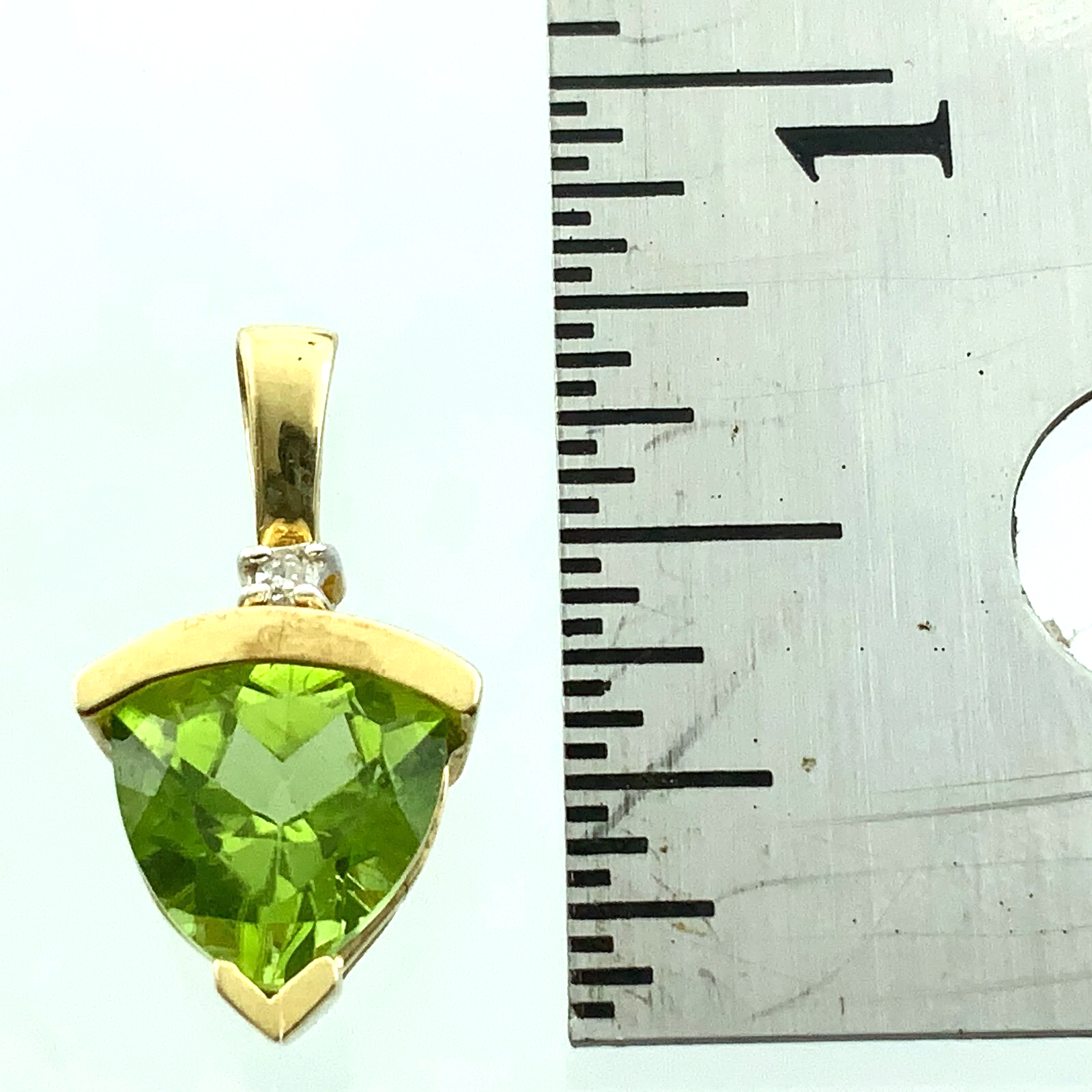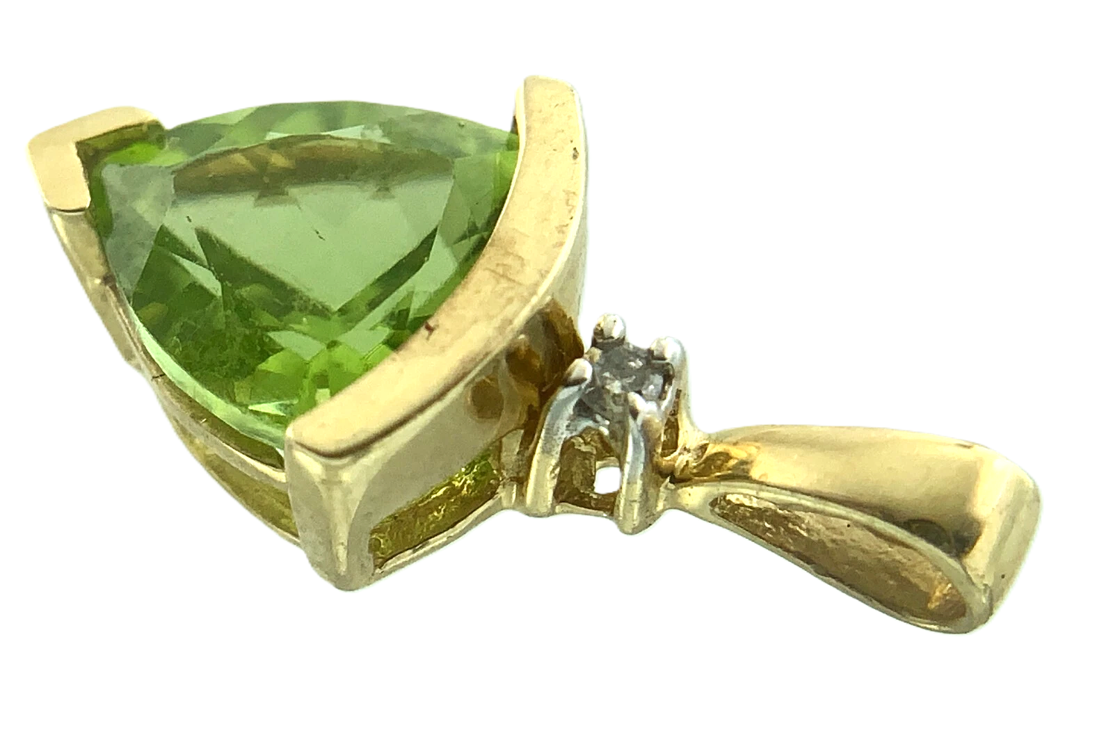 10K Yellow Gold Green Gemstone and Diamond Solitaire Pendant Charm AU129