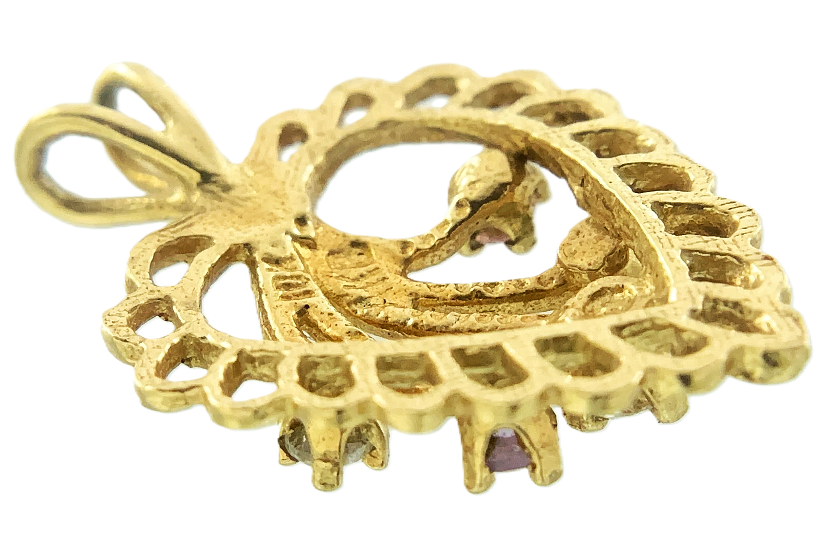 10K Yellow Gold Heart Pendant Scalloped Edge Gemstones AU262