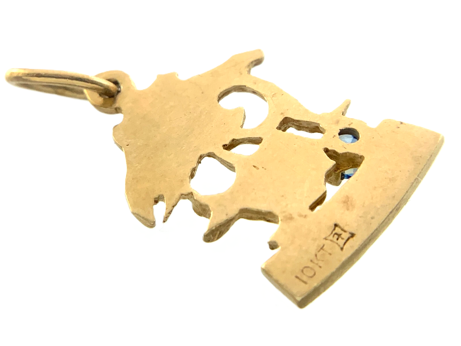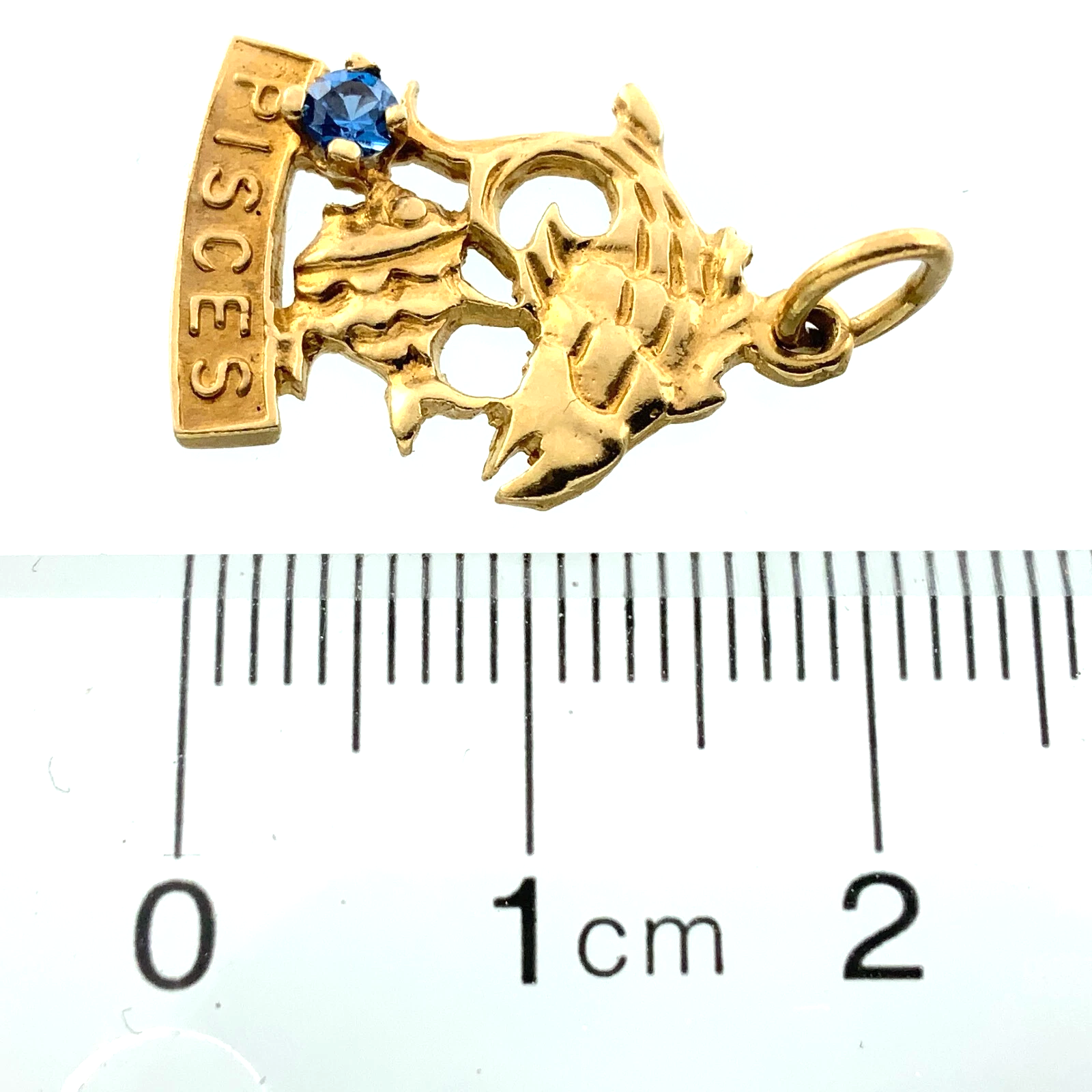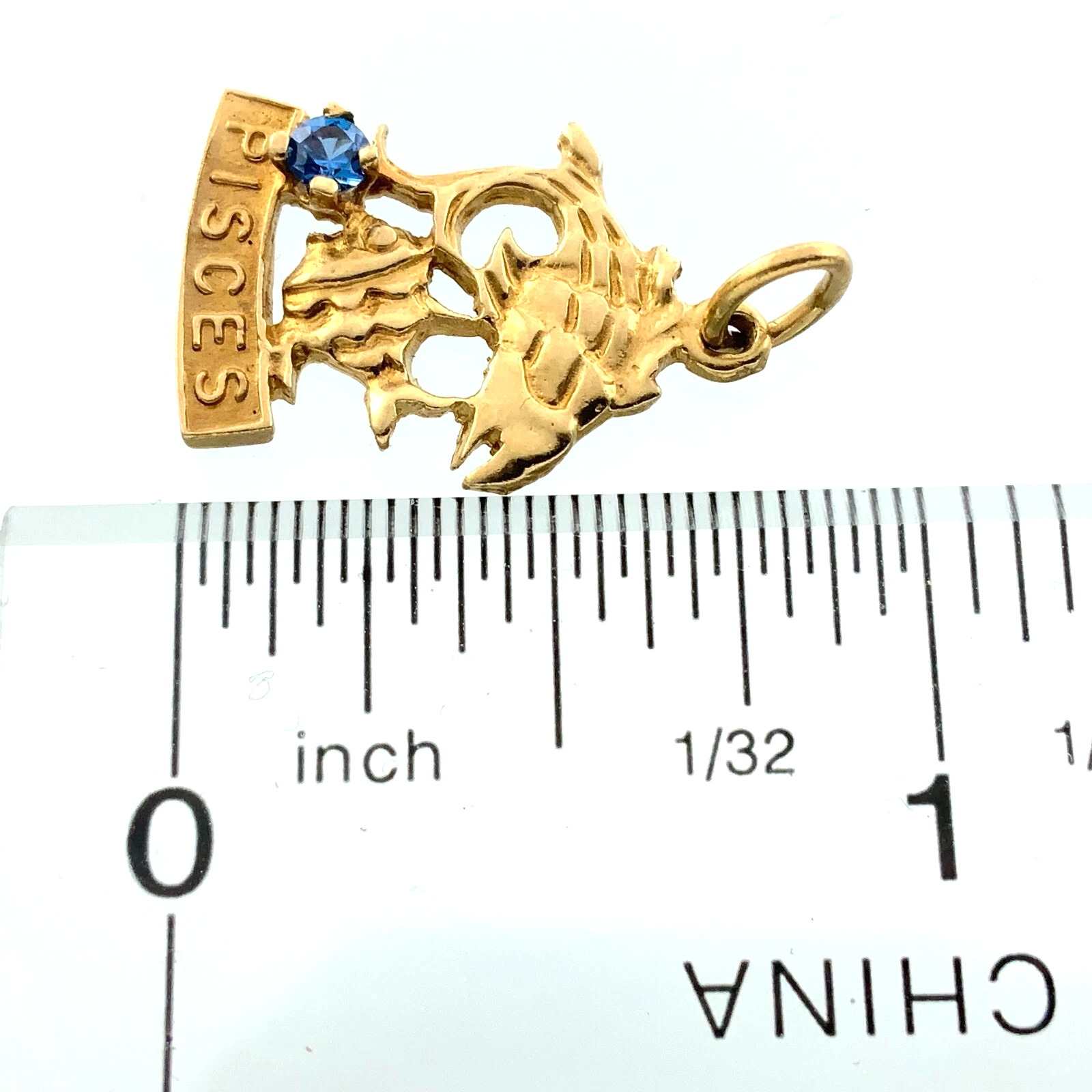 10K Yellow Gold Pisces Aquamarine Pendant Zodiac Sign AU212