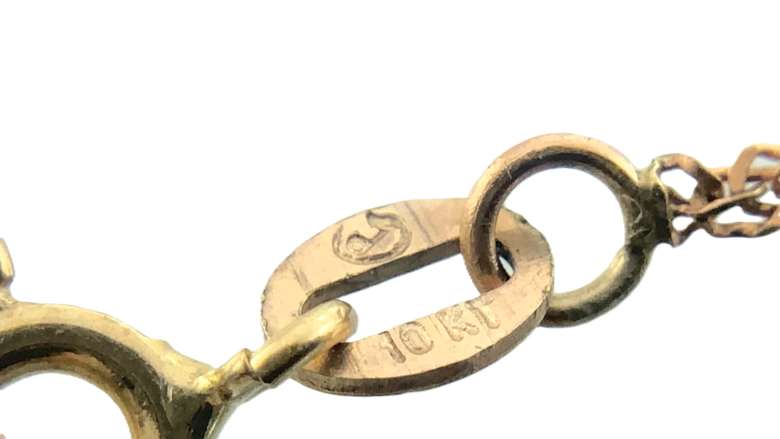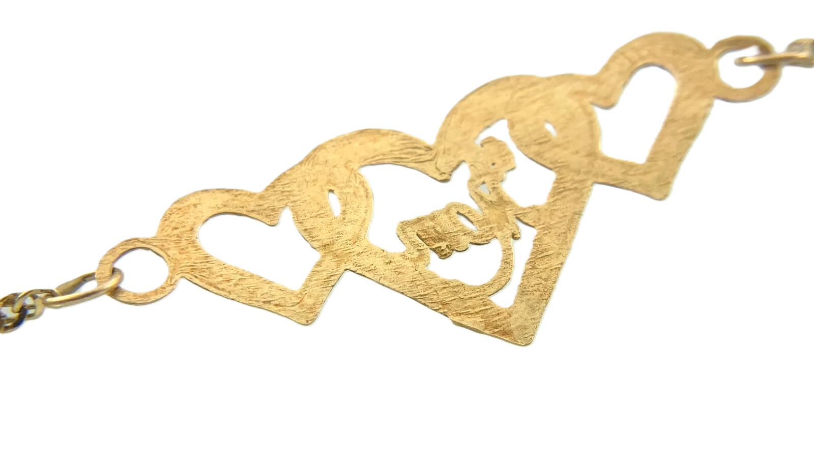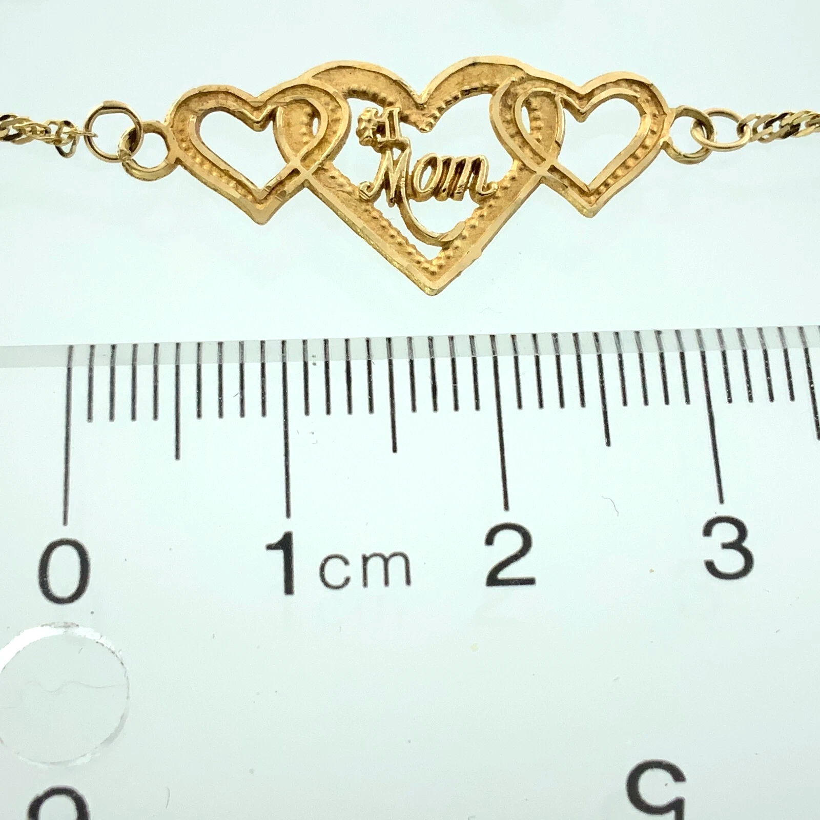 10K Yellow Gold Rope Link Chain Bracelet #1 Mom Three Hearts 7 in x 1 mm AU270