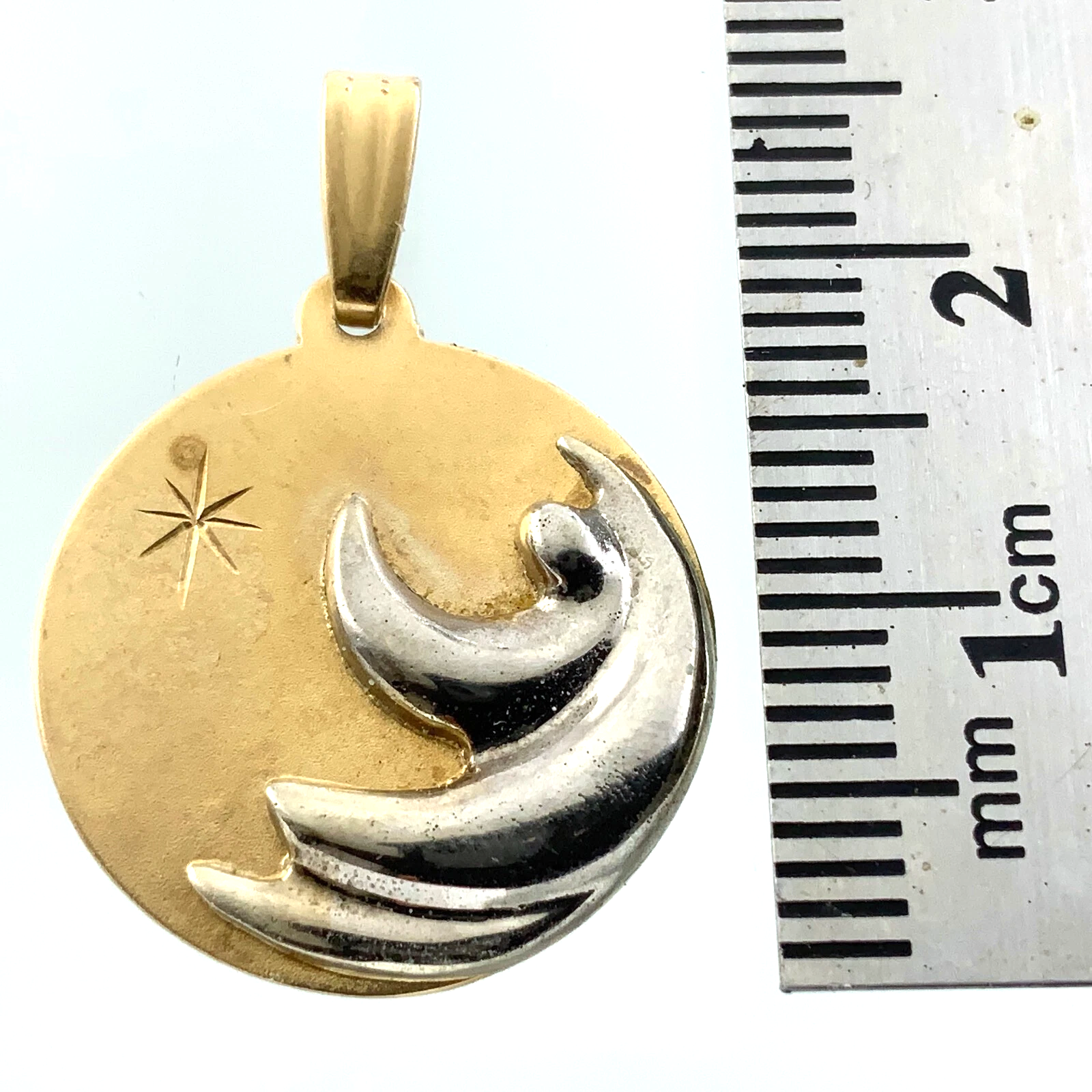 10K Yellow Gold Two Tone Moon and Star Pendant Charm AU071