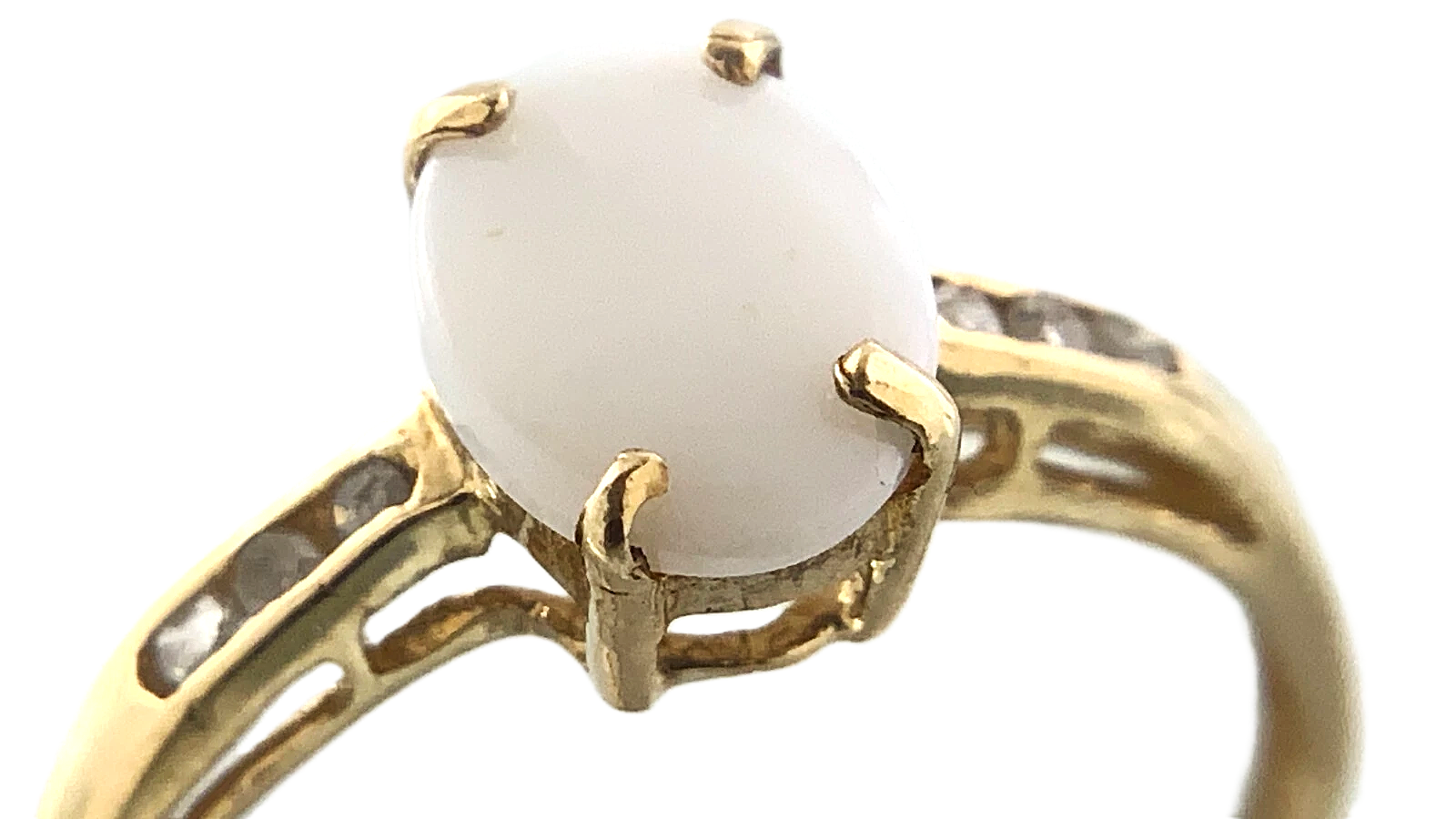 10K Yellow Gold White Stone Opal Ring Solitaire Band Size 6.75 AU175