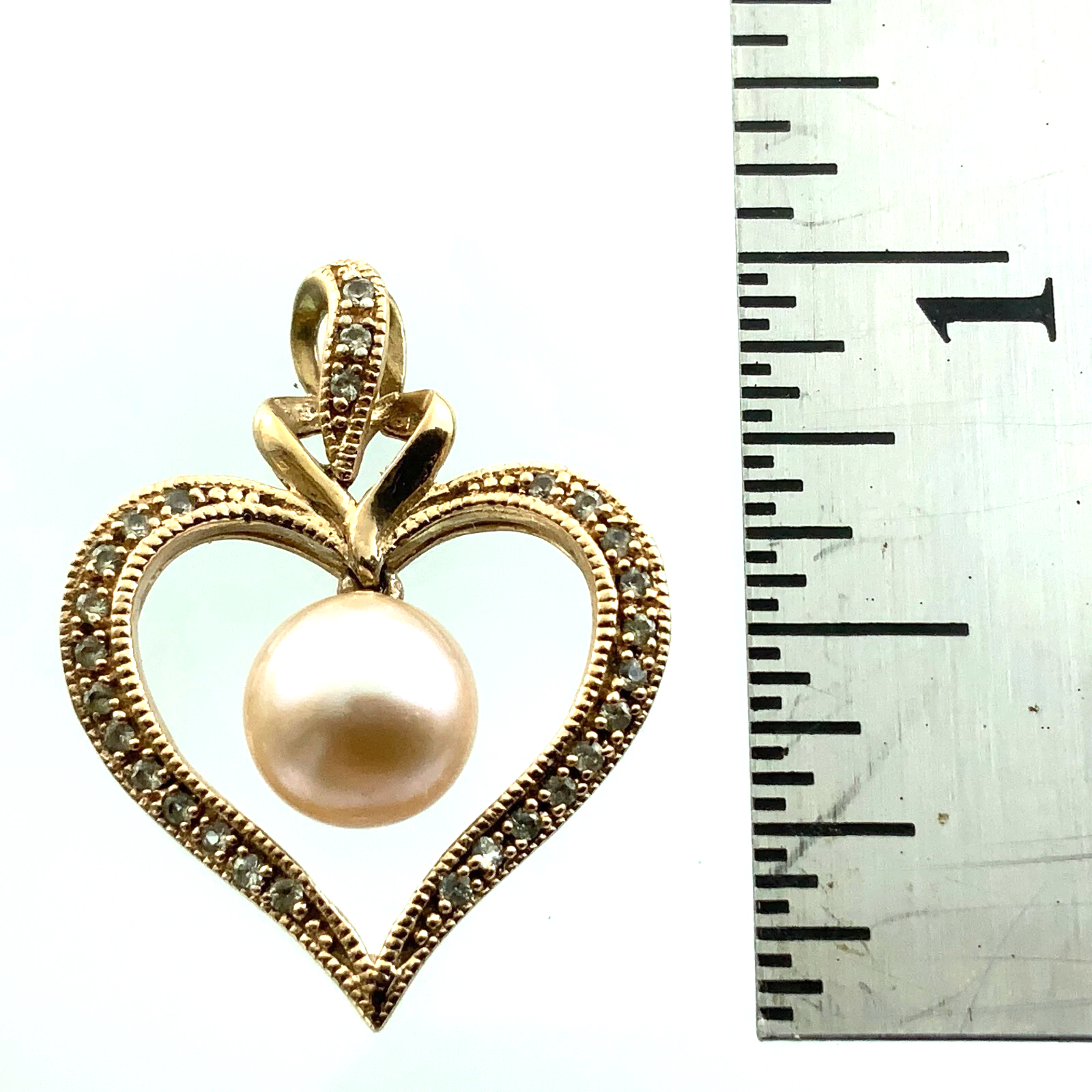 14K Gold Plated 925 Sterling Silver Heart Pearl Pendant Charm AU130