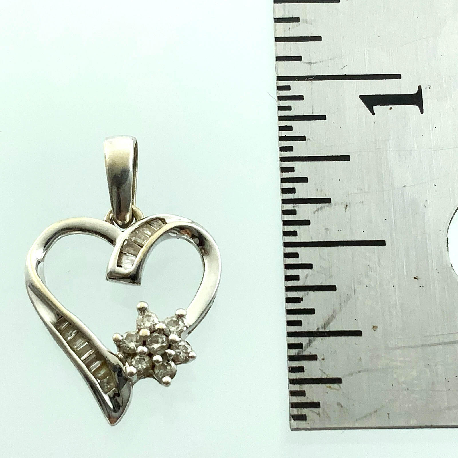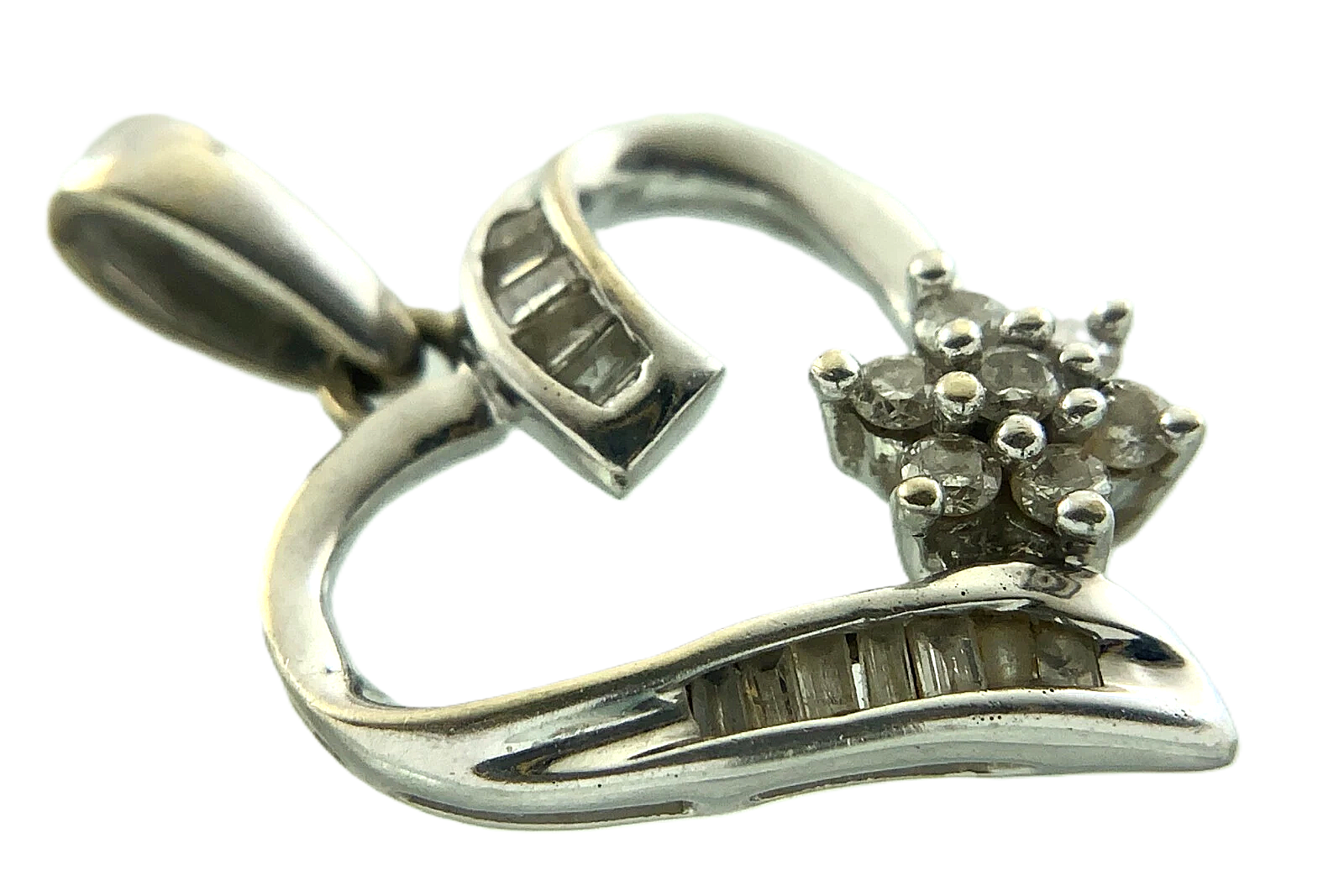 14K White Gold Diamond Snowflake Heart Pendant Charm AU135