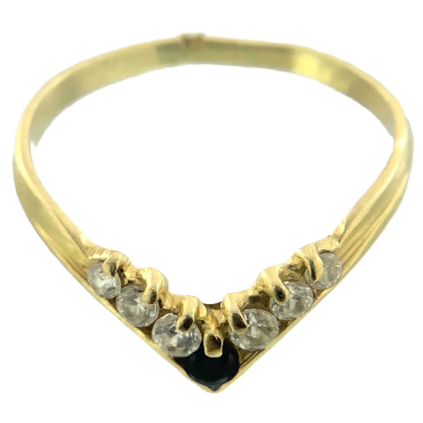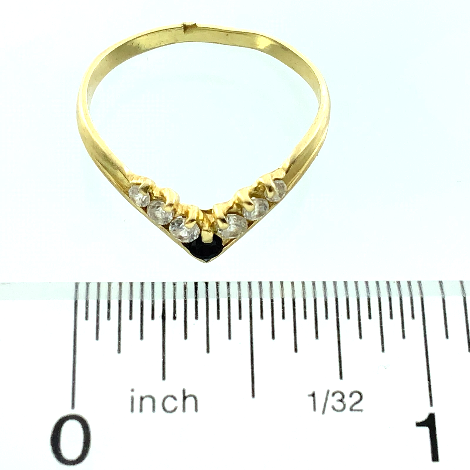 14K Yellow Gold Blue Sapphire Wishbone Ring Size 6.25 AU256