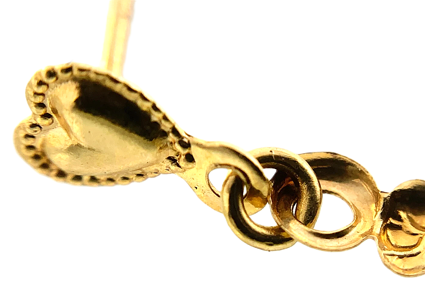 14K Yellow Gold Cross and Heart Dangle Stud Earrings Religious AU201