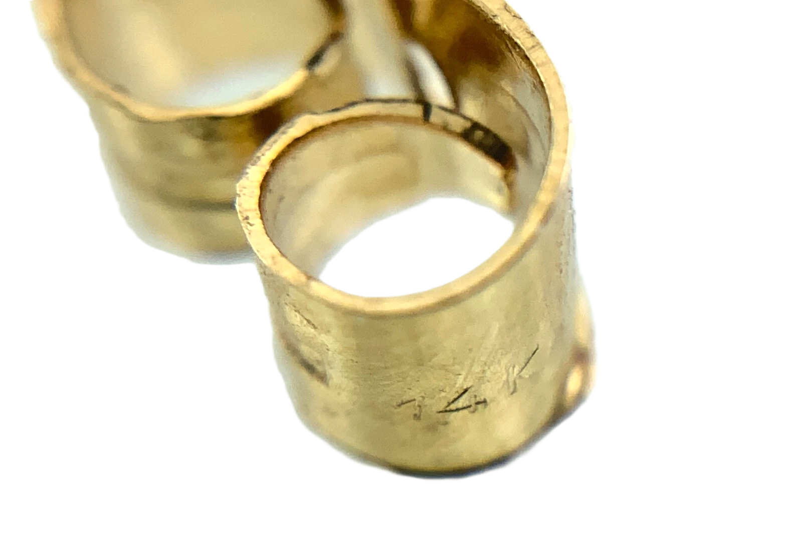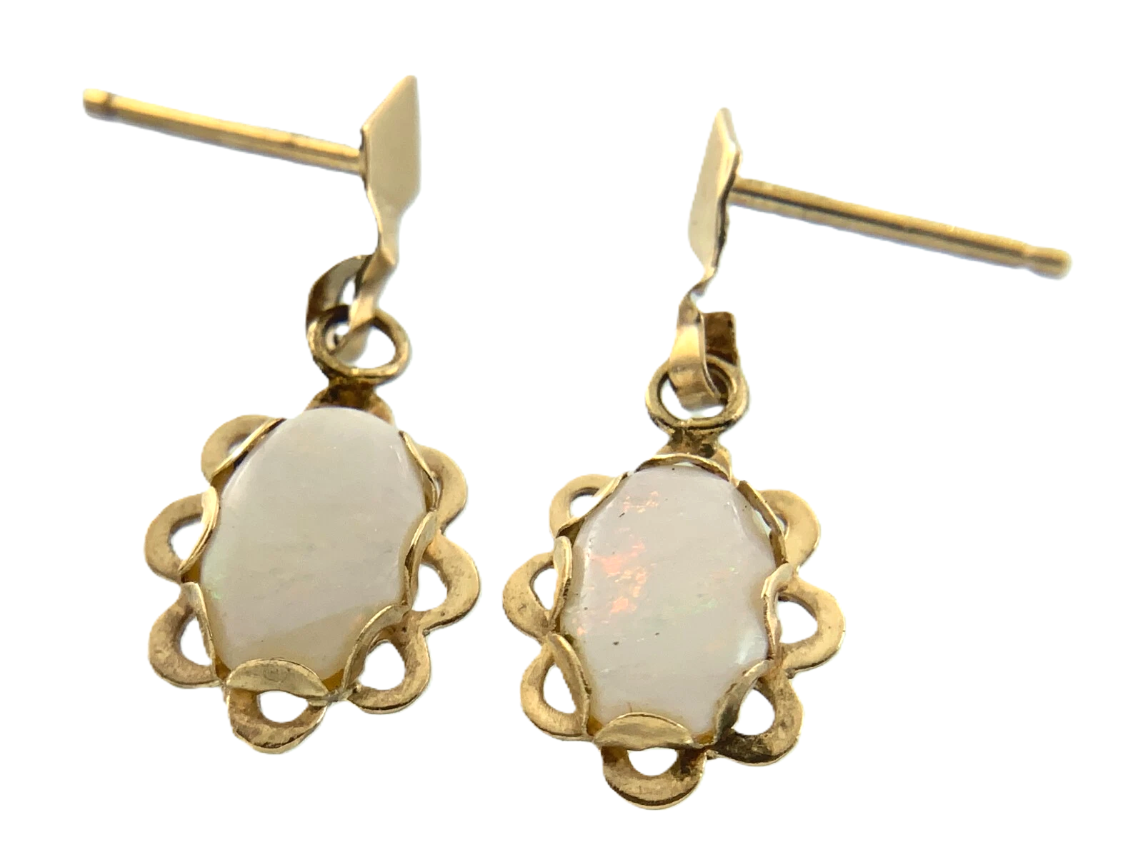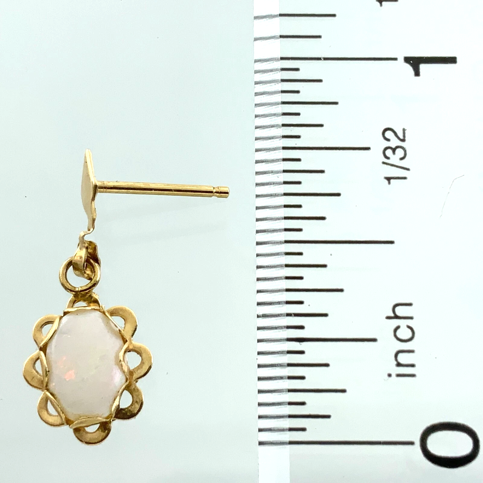 14K Yellow Gold Opal Drop Earrings Solitaire Scalloped Edge AU166