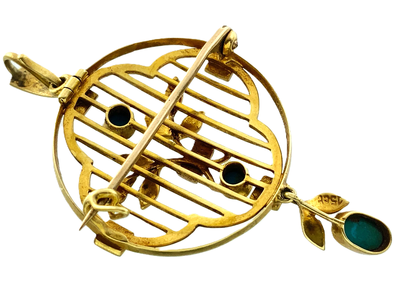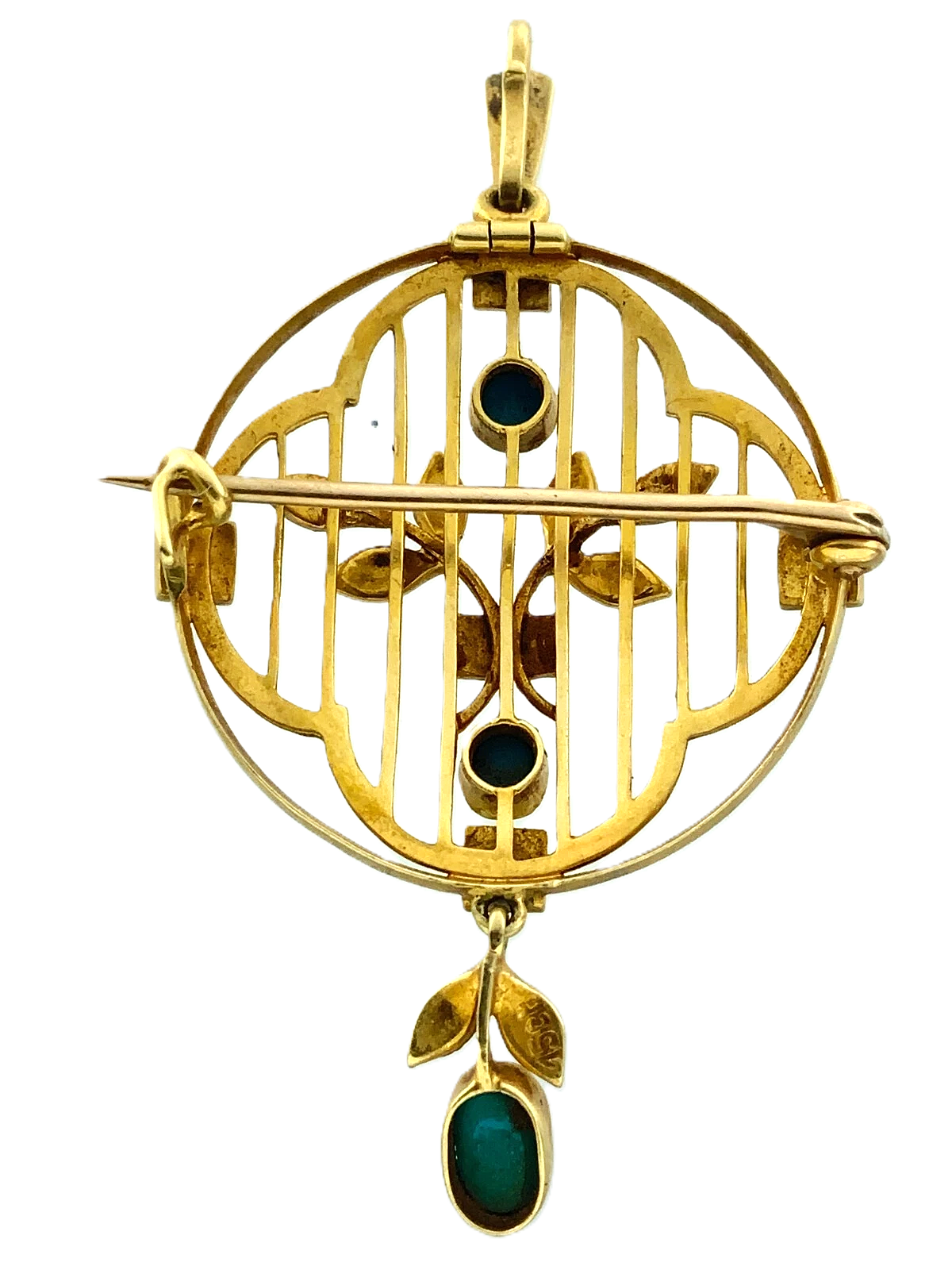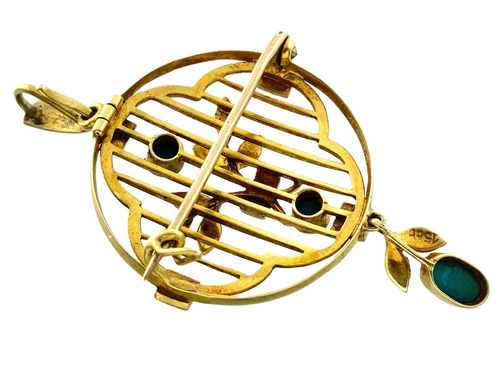 15ct 15K Yellow Gold Antique Victorian Turquoise Pendant Brooch AU211