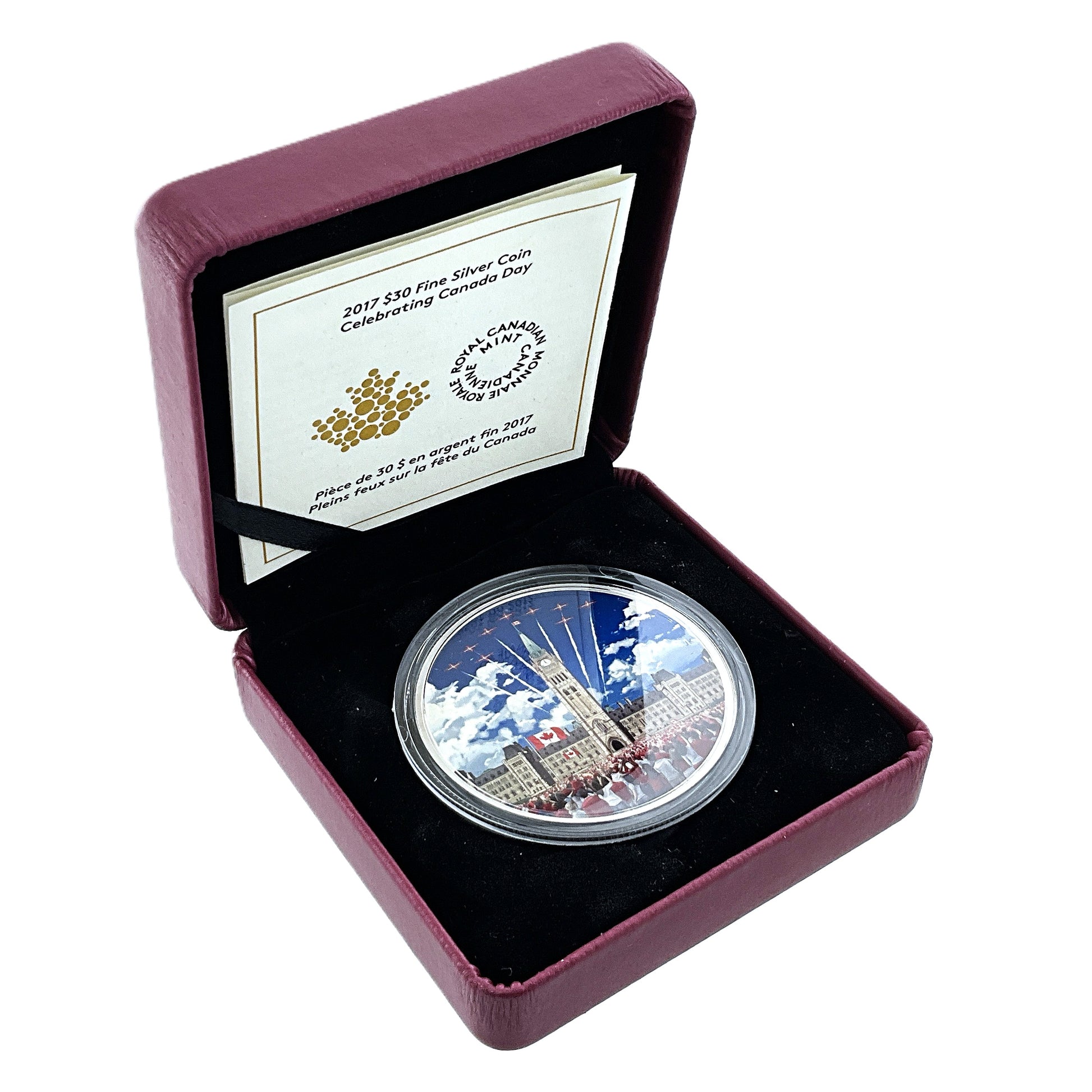 This is a 2017 $30 "Celebrating Canada Day Glow-in-the-dark" 2 oz. pure silver coin from the Royal Canadian Mint. This limited-edition piece was released to commemorate the 150th anniversary of Canadian Confederation.