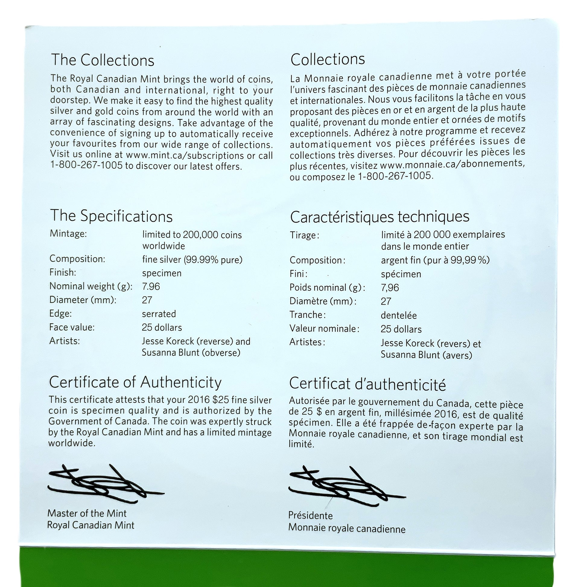 Denomination: 25 Canadian Dollars.
