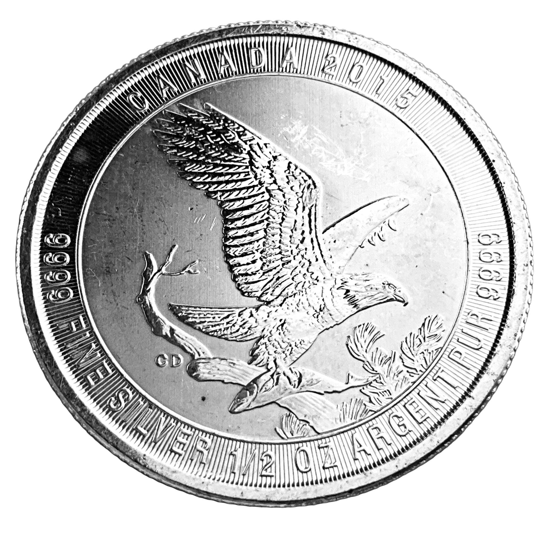 The image shows a 2015 Canadian 1/2 oz Fine Silver Bald Eagle coin.