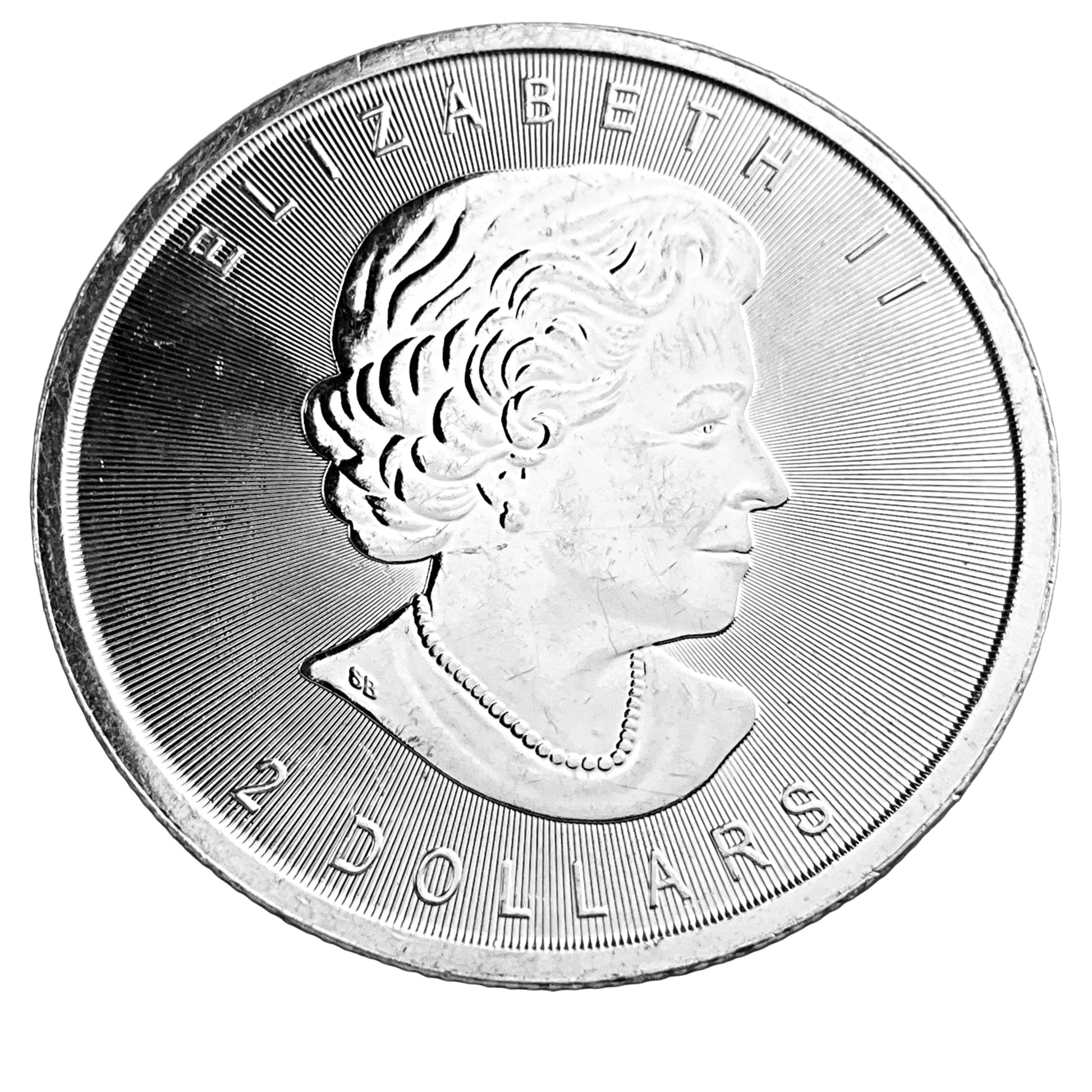 The image displays the obverse side of a Canadian Silver Dollar, featuring a portrait of Queen Elizabeth II. The inscription "ELIZABETH II" and "D. G. REGINA" (Dei Gratia Regina, meaning "By the Grace of God, Queen") are visible around the effigy. This design is typical of Canadian coinage featuring the reigning monarch.