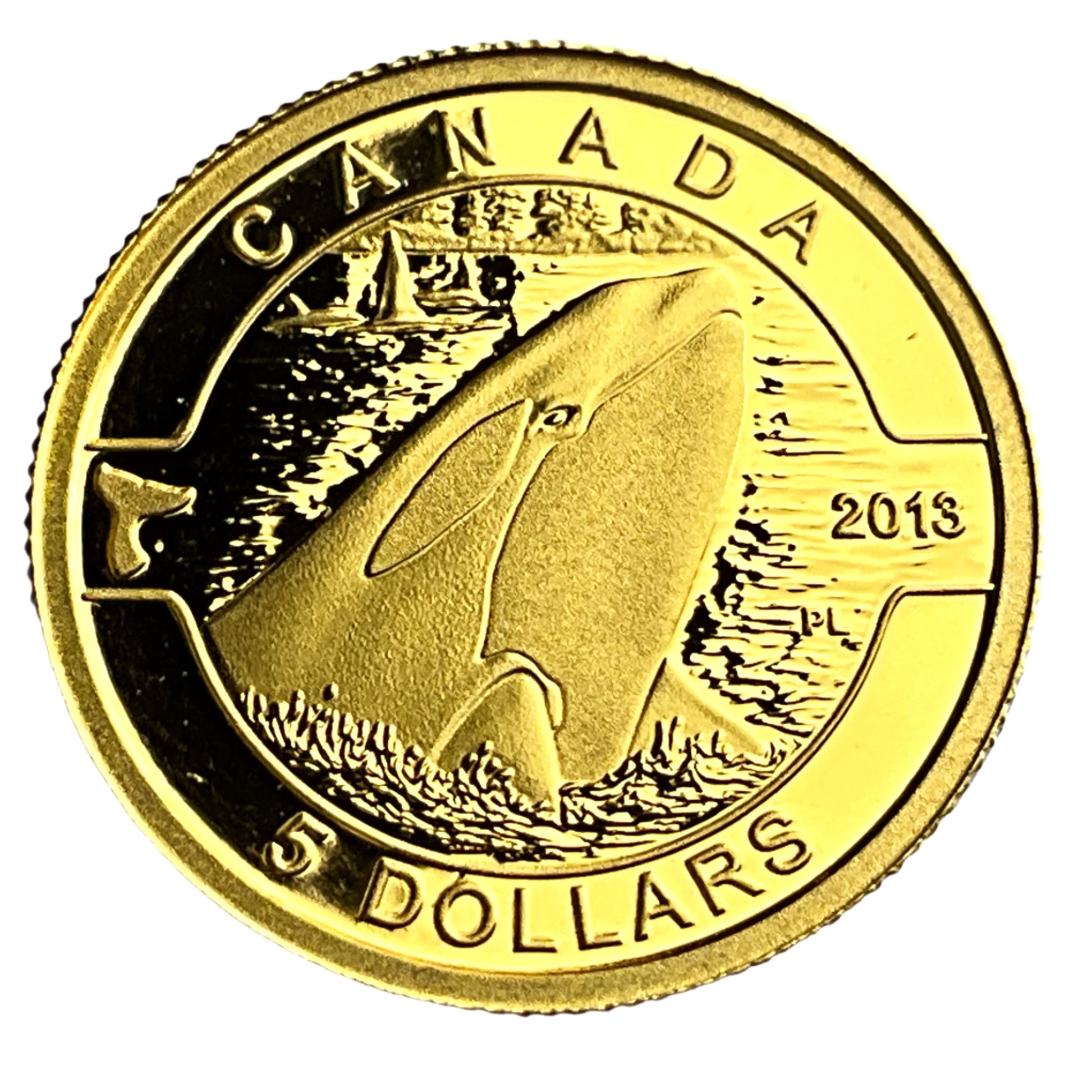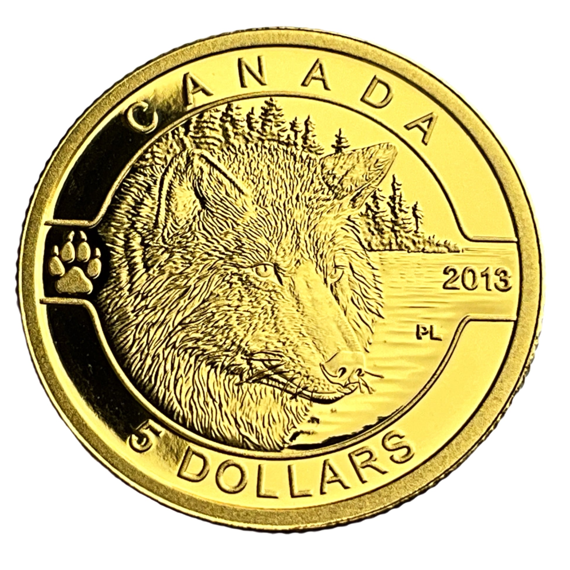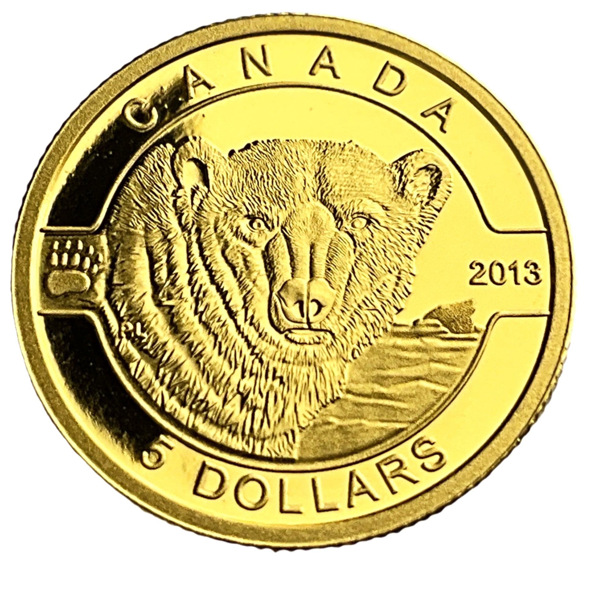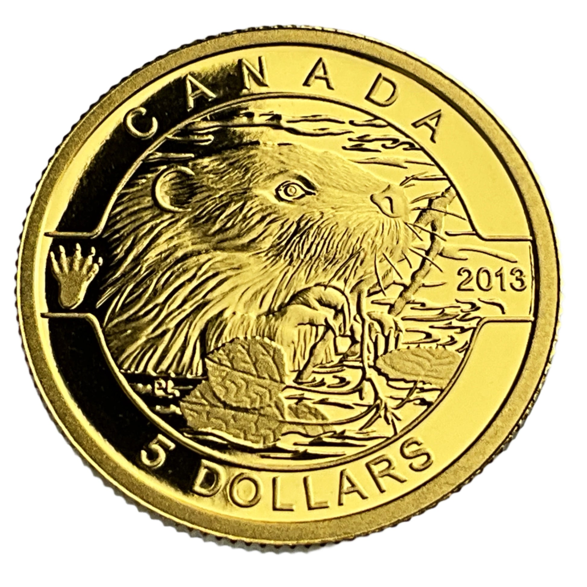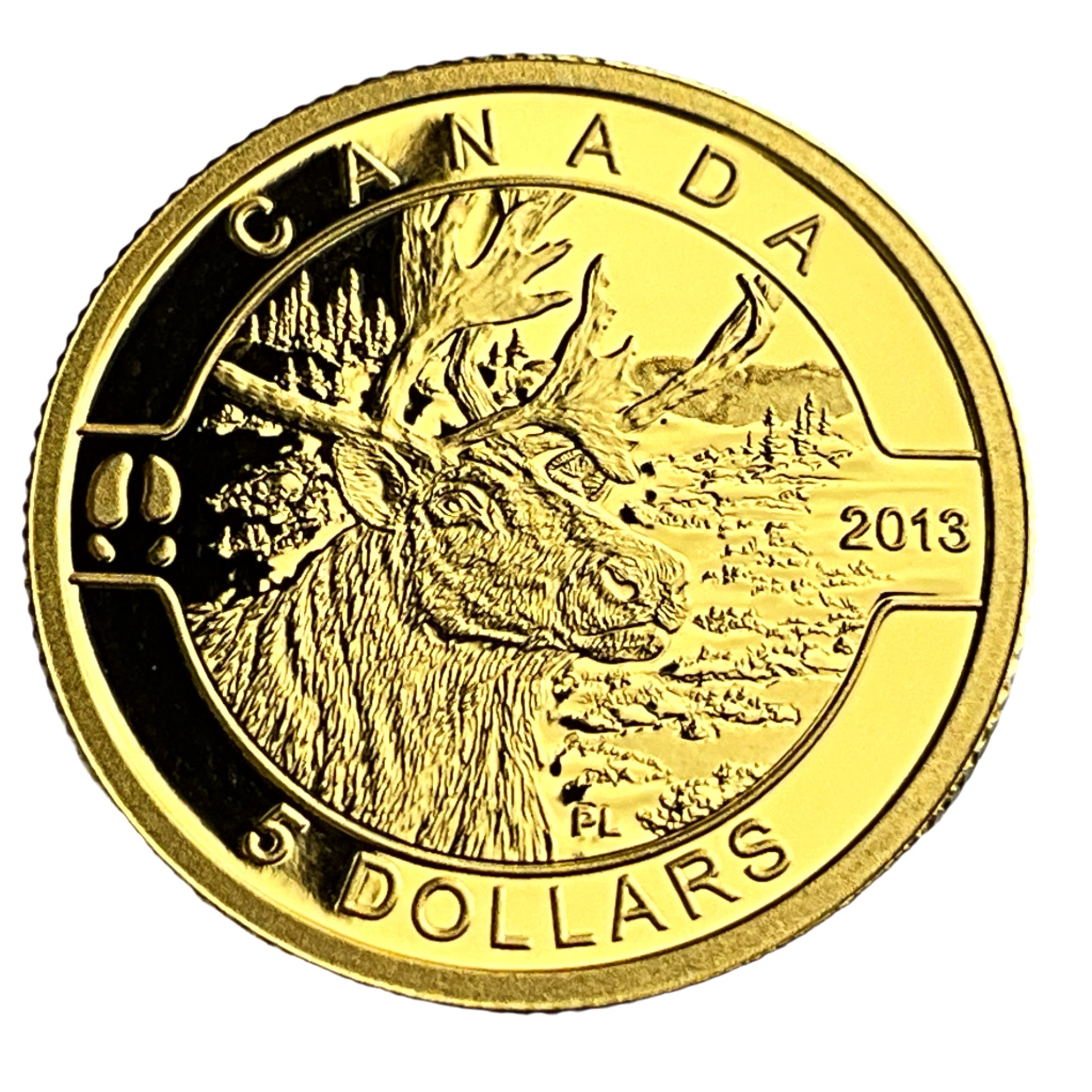 The image displays a 2013 Canadian $5 gold coin from the Royal Canadian Mint's "O Canada" series.