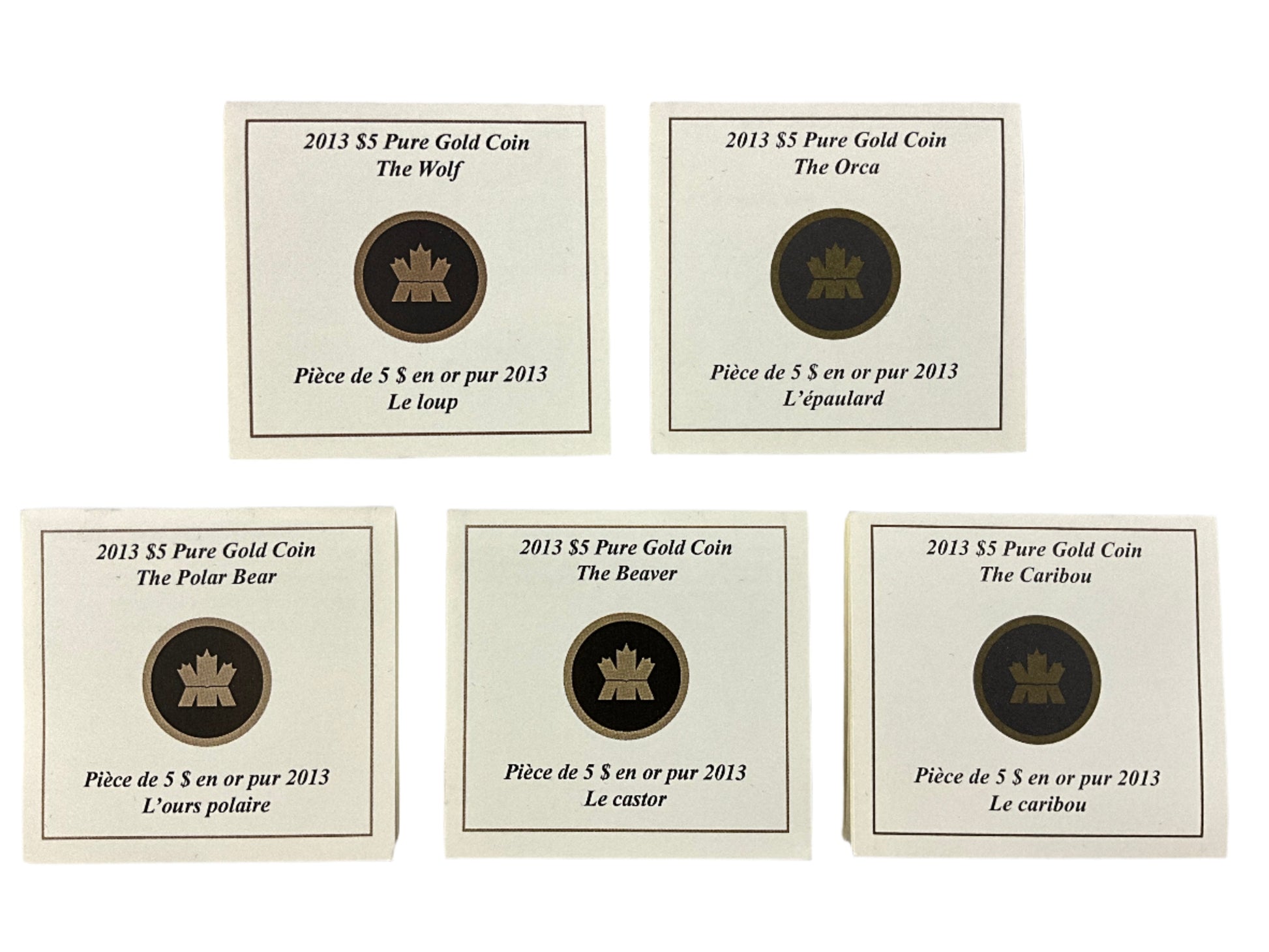 Content: 5 x .100 troy oz. of .9999 fine gold