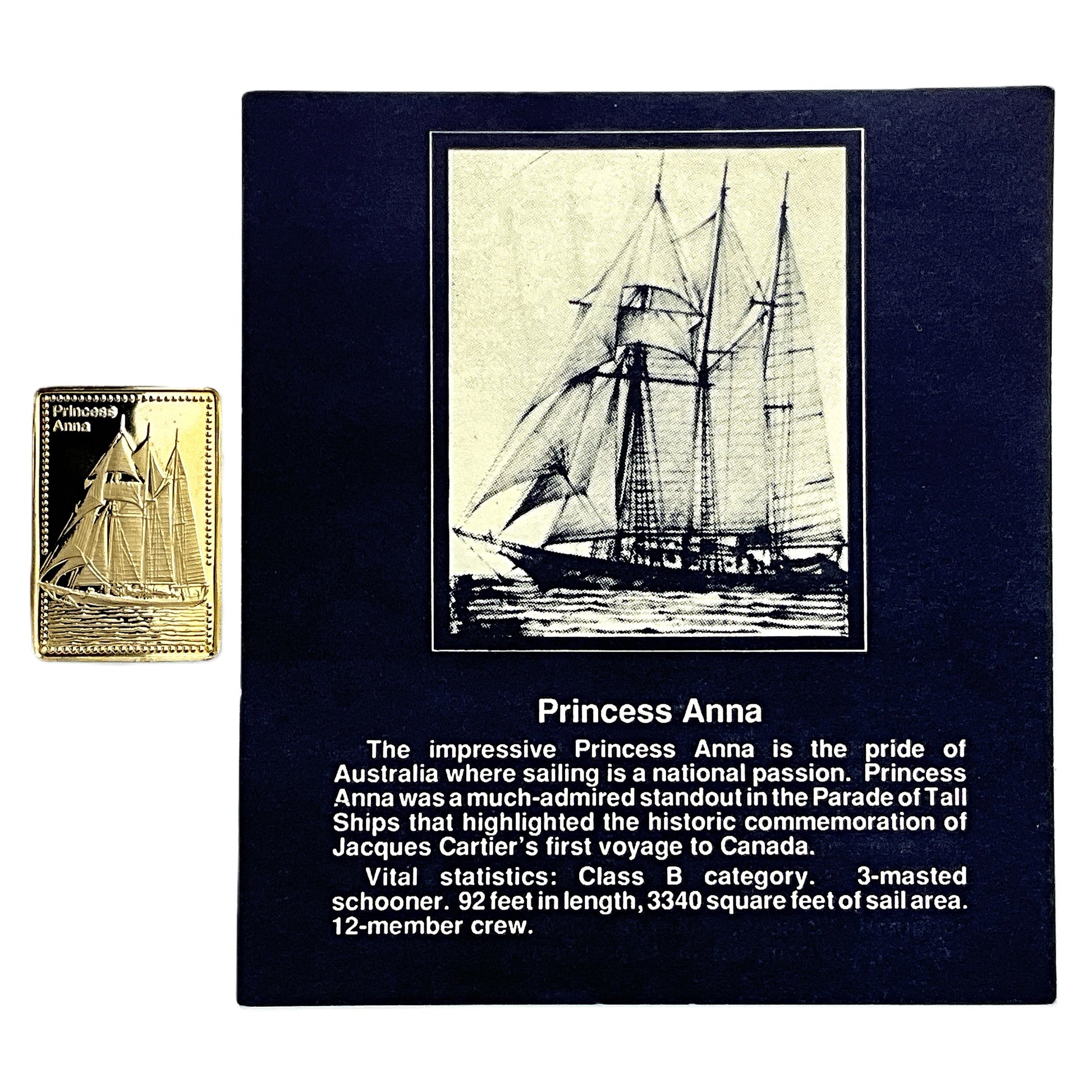 The image displays information about the tall ship Princess Anna with a silver bar.