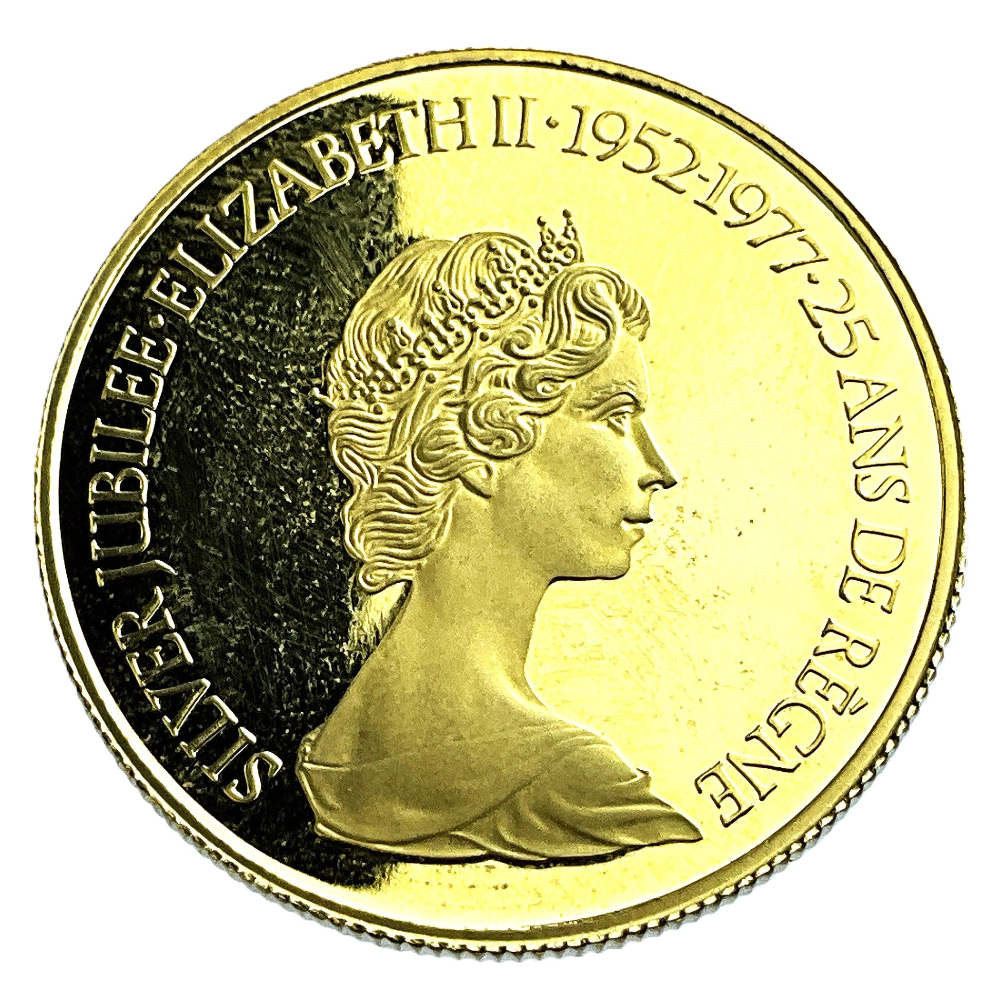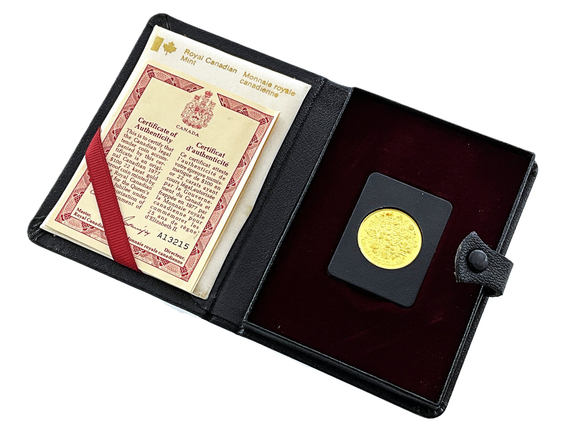 This is a 1977 Canadian 100-dollar gold coin, also known as the Jubilee Flowers coin. It was issued to commemorate the Silver Jubilee of Queen Elizabeth II.