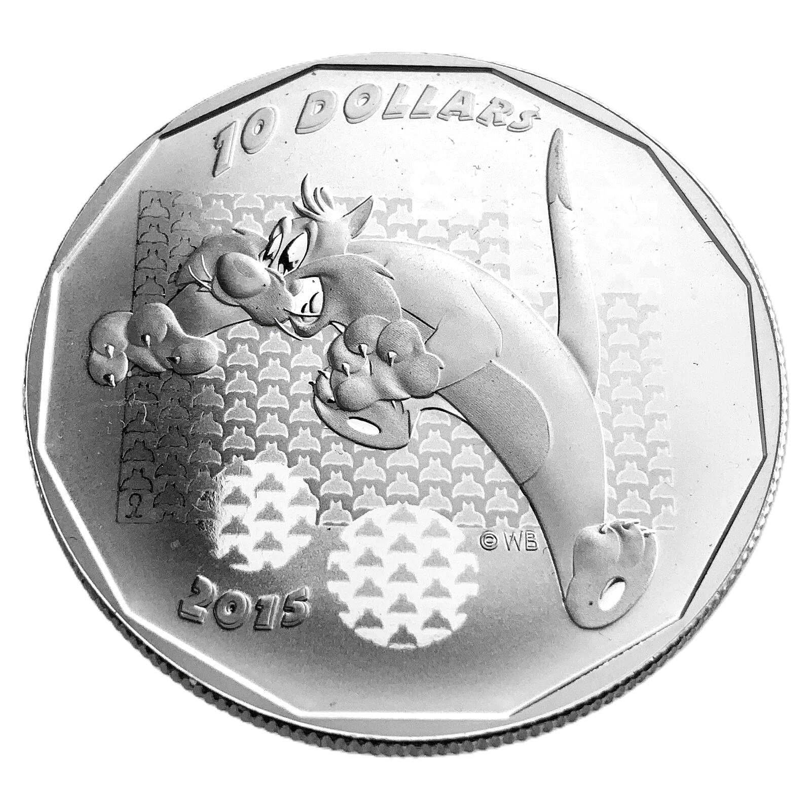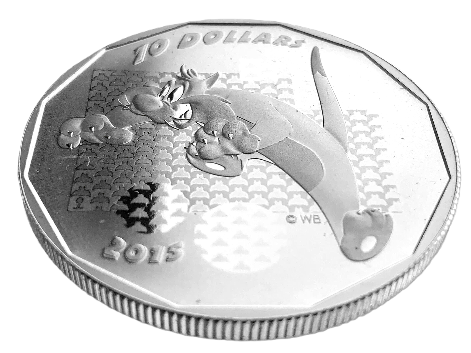 This is a 2015 Canadian $10 fine silver coin from the Royal Canadian Mint's Looney Tunes series, featuring the character Sylvester the Cat.