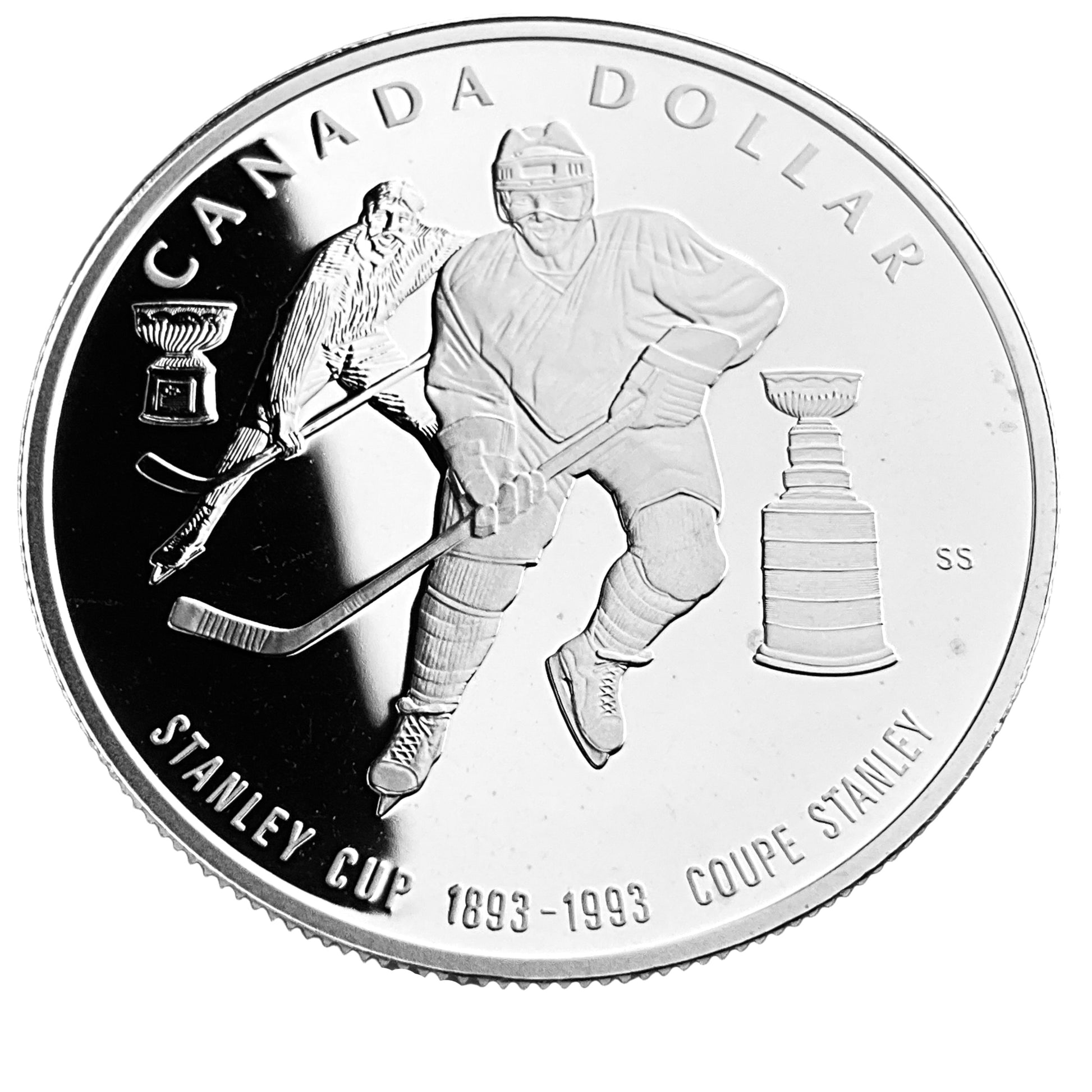 Inscriptions "CANADA DOLLAR" at the top and "STANLEY CUP 1893-1993 COUPE STANLEY" at the bottom, marking the centenary of the Stanley Cup.