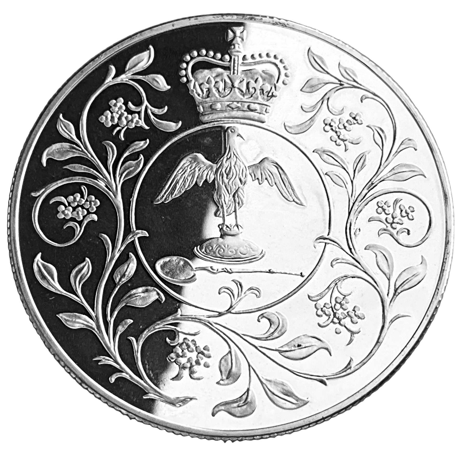 Although initially having a face value of twenty-five new pence, these crowns were revalued to £5 in 1990.