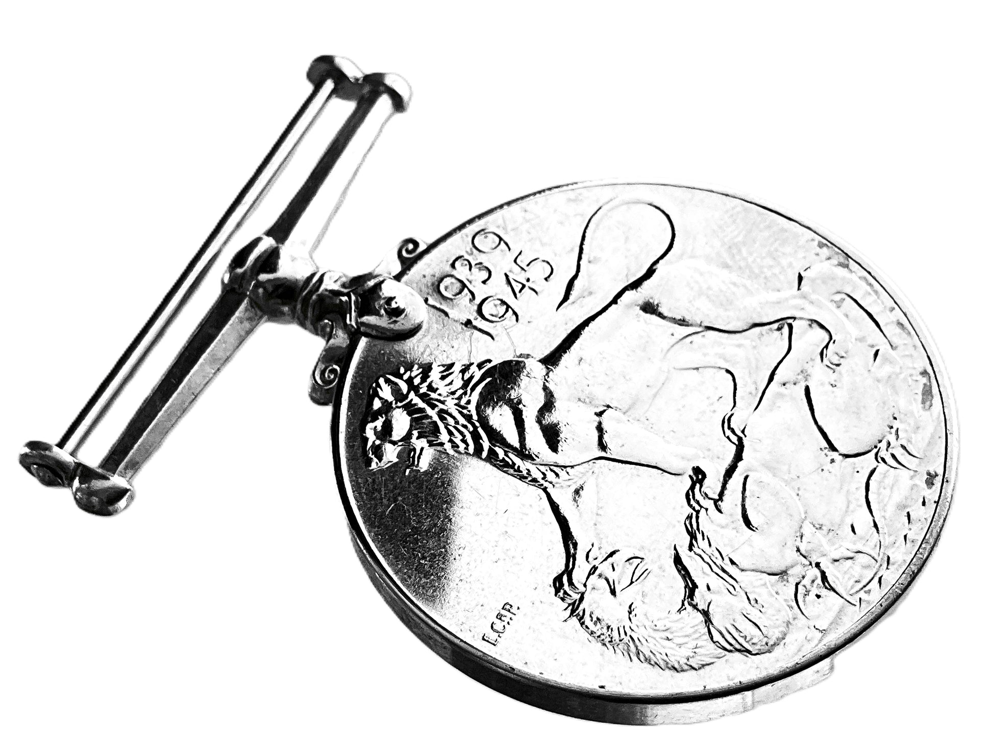 The War Medal 1939-1945 is a campaign medal instituted by the United Kingdom on 16 August 1945. It was awarded to all full-time personnel of the British Armed Forces and the Merchant Navy who served for a minimum of 28 days between 3 September 1939 and 2 September 1945. This period encompasses the entirety of World War II, with the medal recognizing both operational and non-operational service.