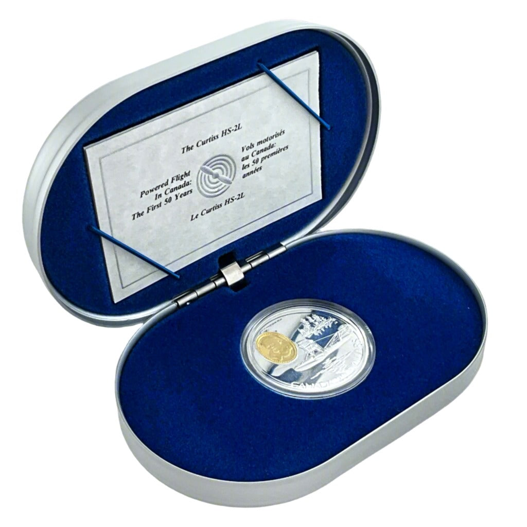 Design Elements: It features a detailed depiction of the Curtiss HS-2L seaplane on the reverse, with a 24-karat gold-plated cameo portrait of Stuart Graham, considered the world's first bush pilot, above the plane.